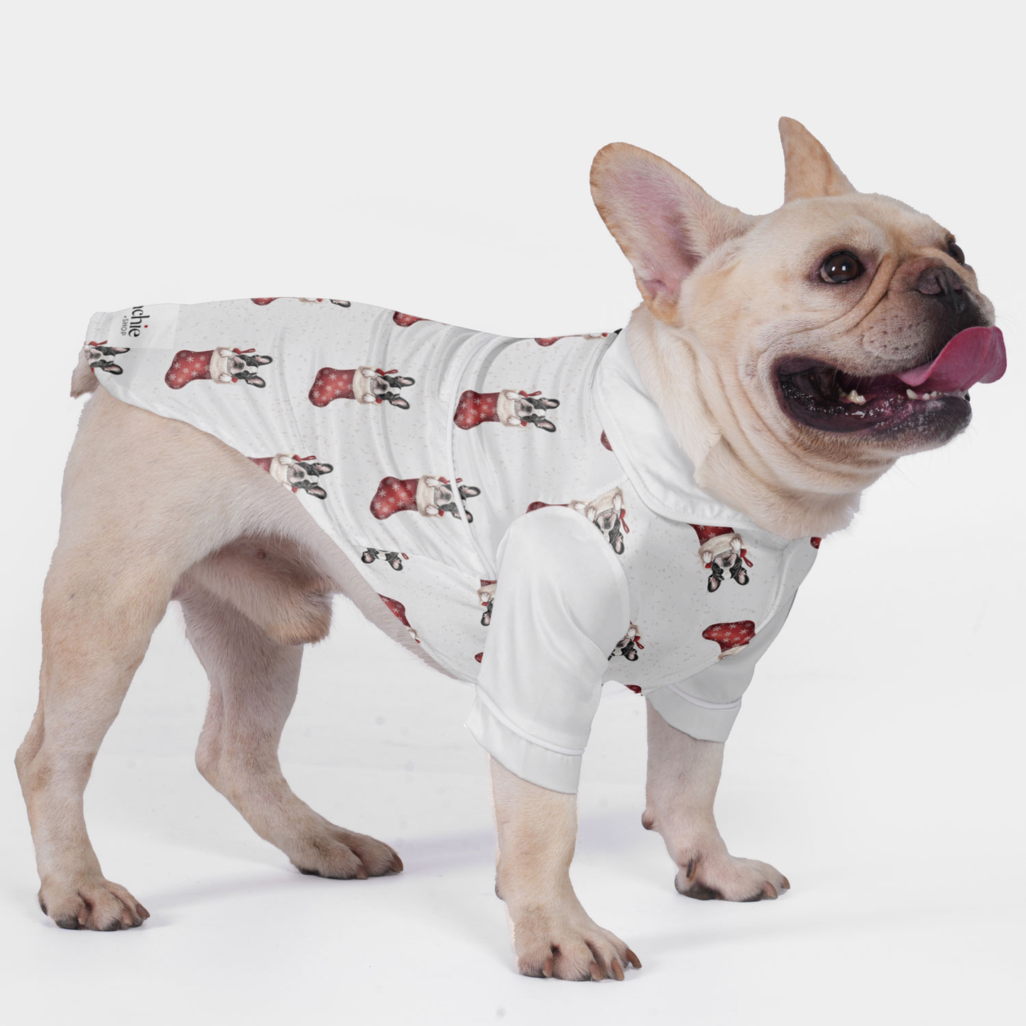 Slip your pup into something soft and stylish. These Frenchie-specific pajamas offer breathable comfort and a cozy stretch with their 97% polyester and 3% spandex blend—perfect for relaxing days or nights.
