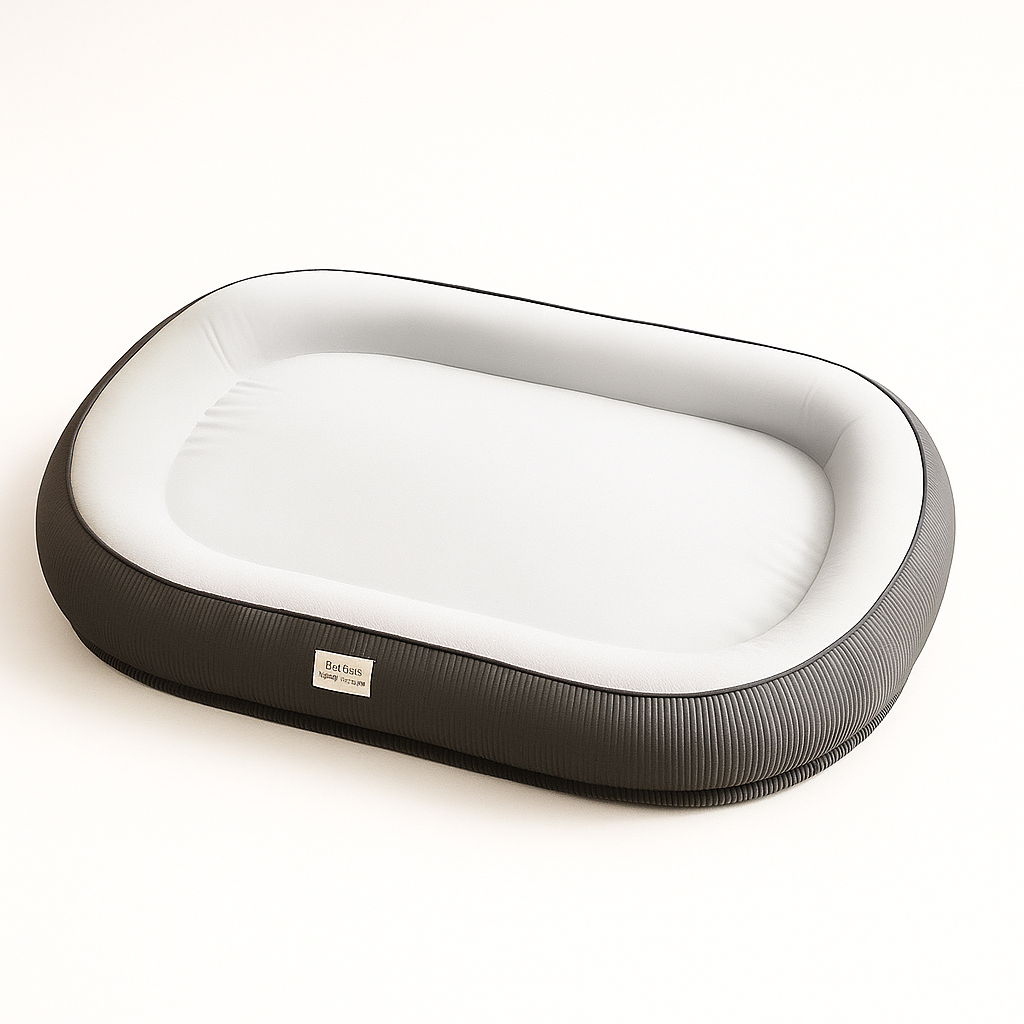 Generous Dimensions: Spacious sleeping surface with raised bolsters for extra head and hip support—ideal for the compact, muscular build of French Bulldogs.