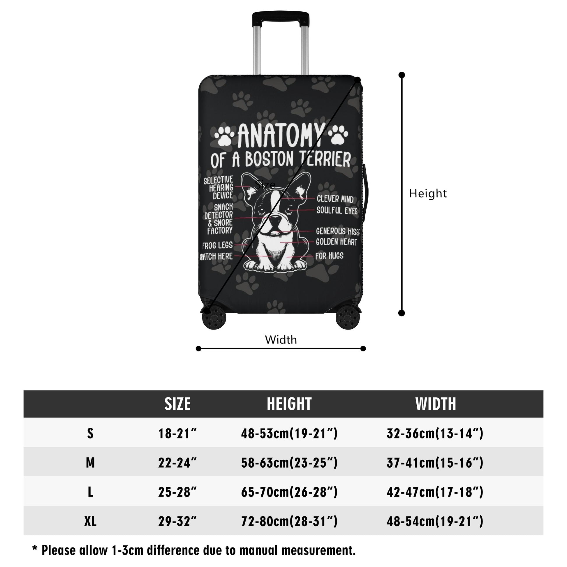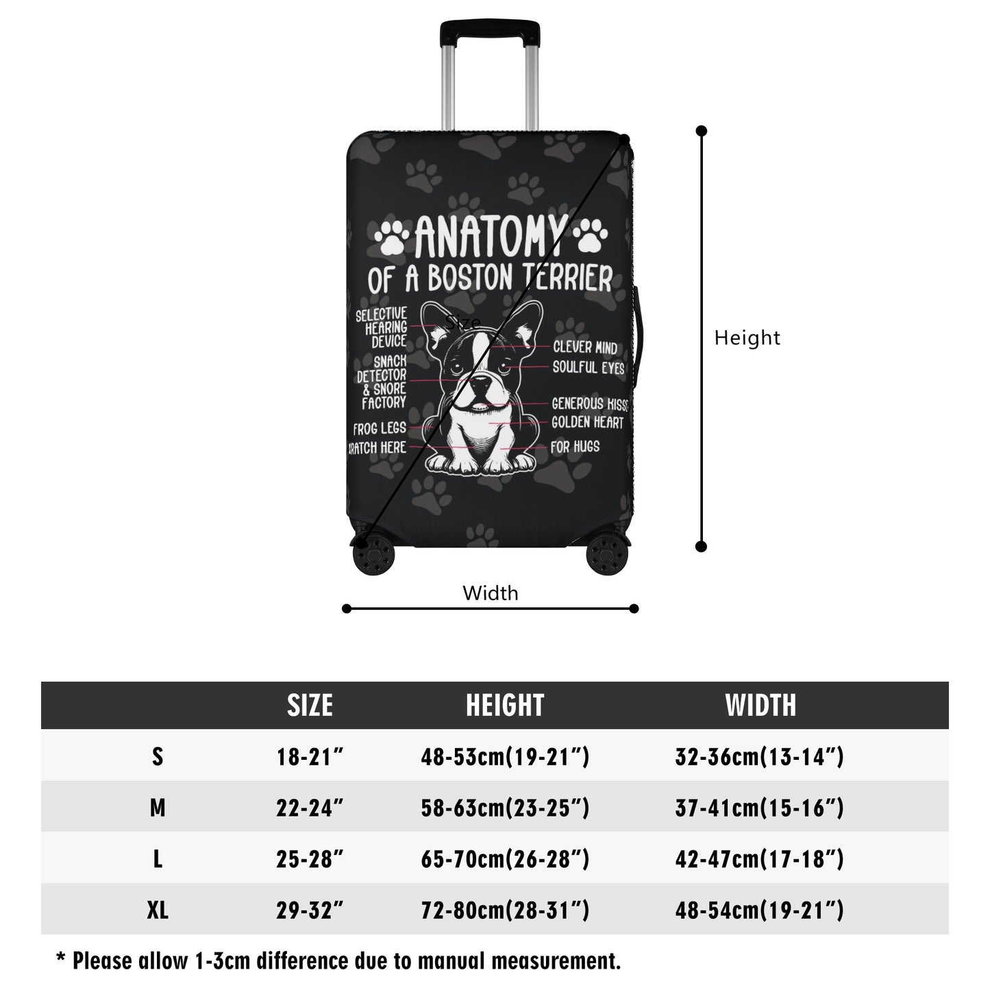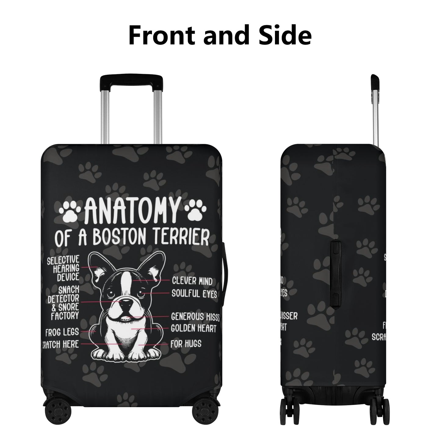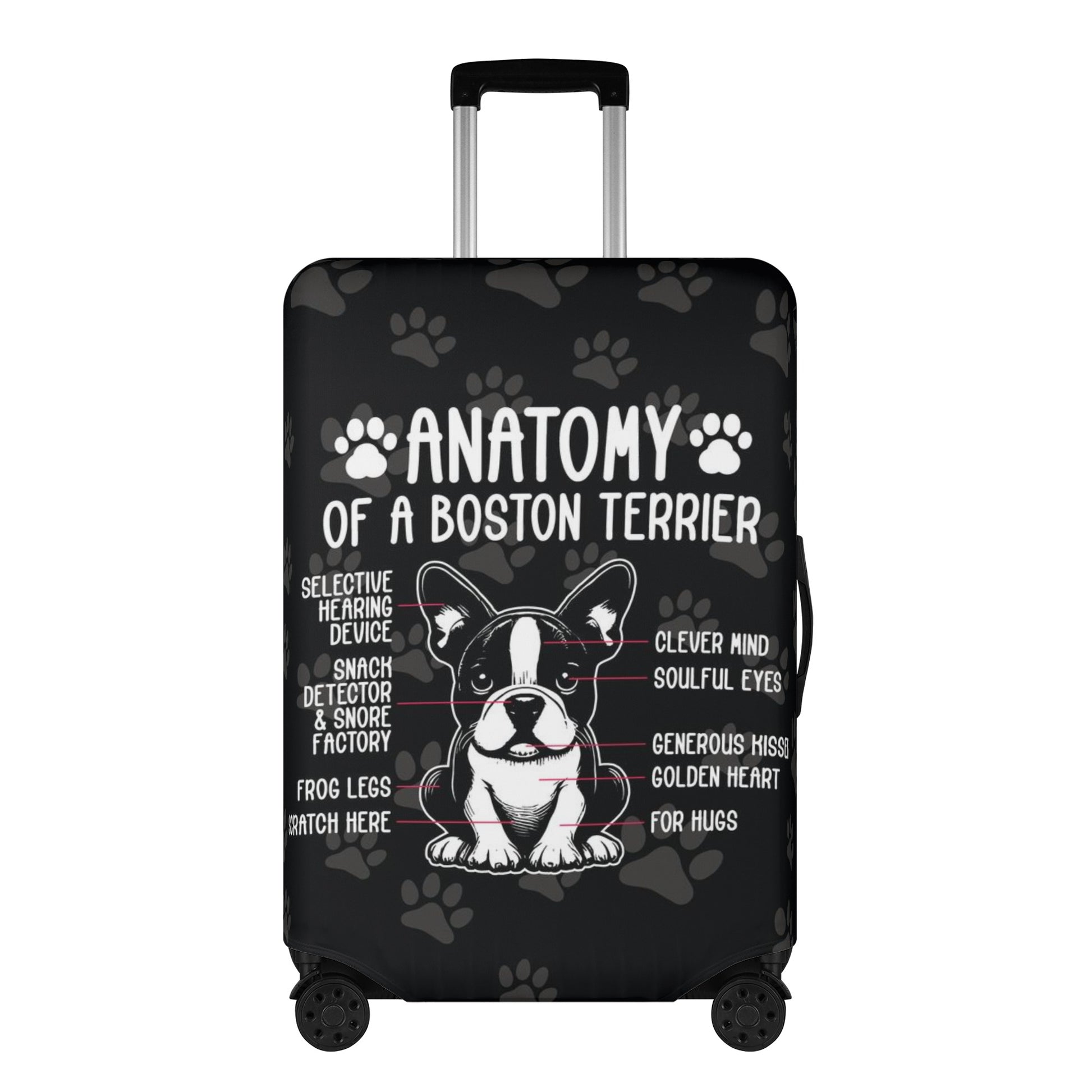 The case cover also features a charming Boston Terrier print on both sides that will make your luggage stand out and show your love for these cute dogs.