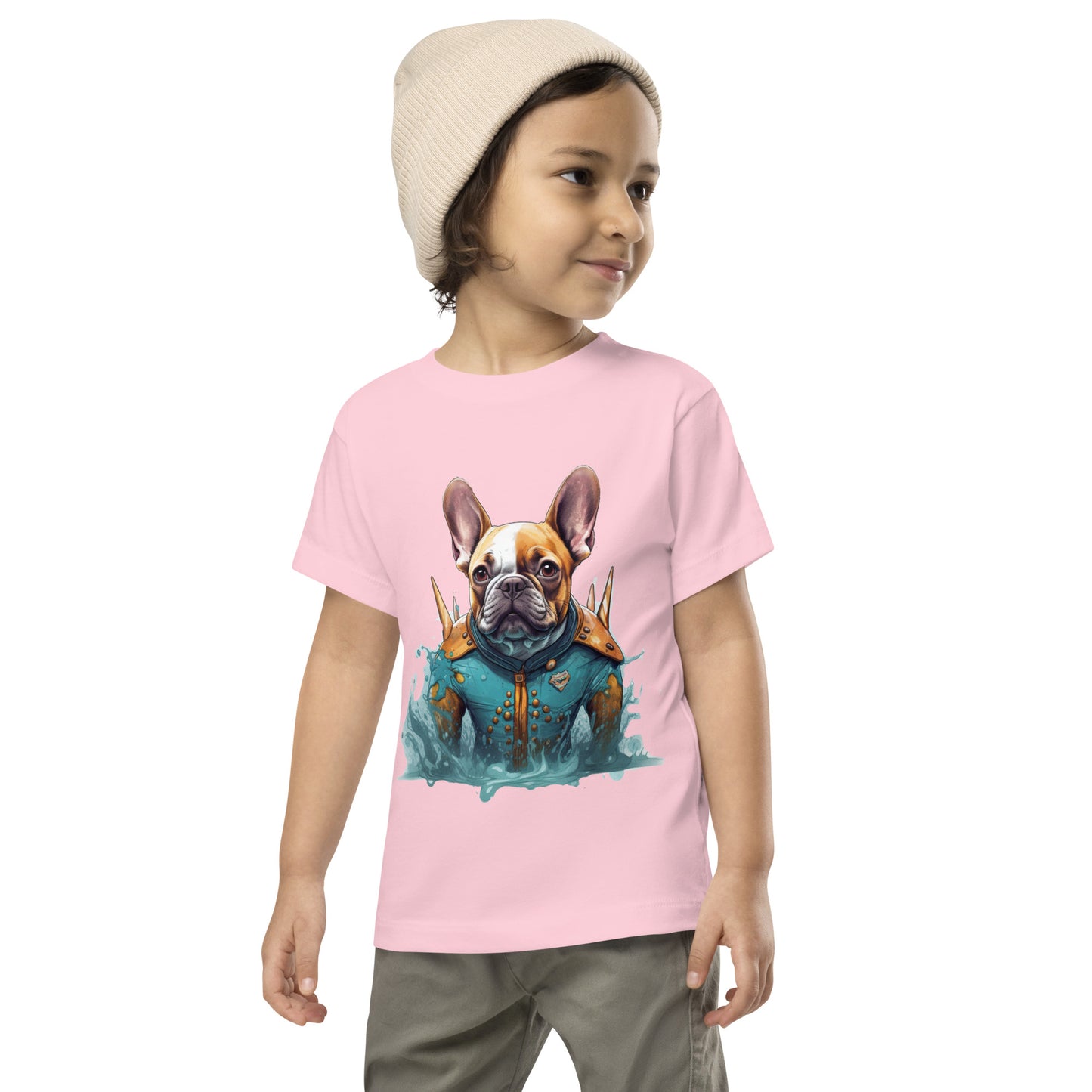 This distinctive shirt features an irresistible Frenchie design set against an oceanic backdrop. As your child wears this unique piece, their bond with their favorite canine buddy takes on an exciting, maritime twist.
