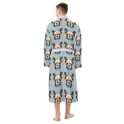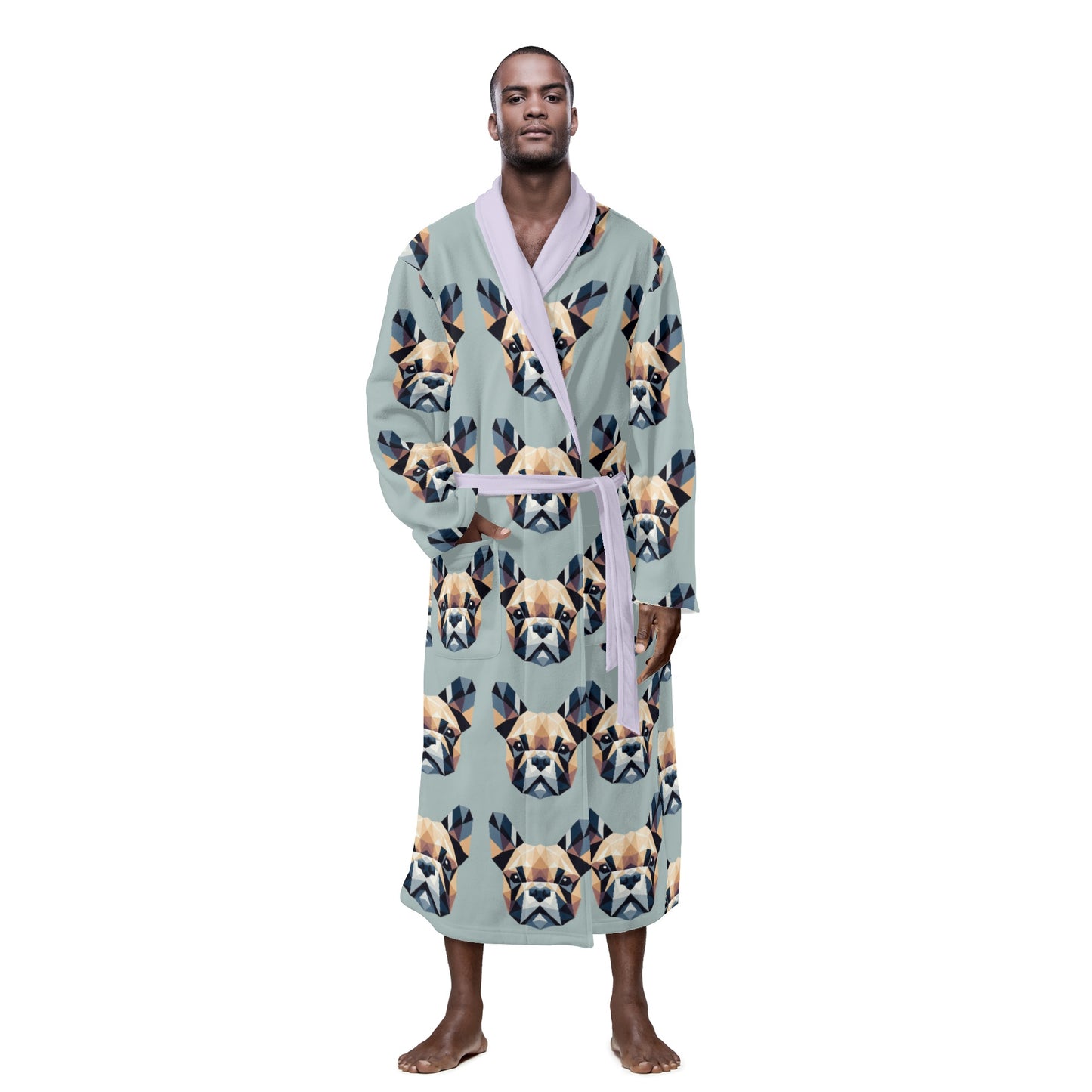 Elevate your downtime with this unique bathrobe that caters to your love for Frenchies. Whether you're starting your day with a cup of coffee or winding down in the evening, our Men's Bathrobe brings comfort and charm together seamlessly. Treat yourself or surprise the Frenchie aficionado in your life with this exceptional piece of loungewear – a perfect blend of style, comfort, and a hint of French Bulldog flair. Enjoy the ultimate in relaxation with our Men's Bathrobe.