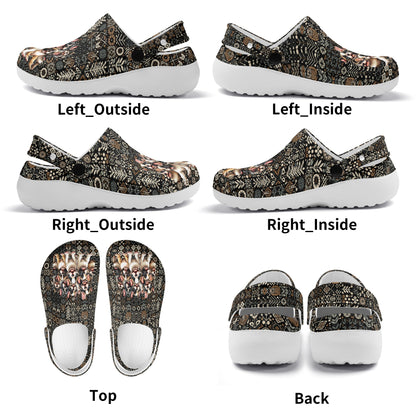 Whether you're dashing about on errands or enjoying a leisurely stroll, your feet will relish the support and flair these clogs provide. With a range of sizes from US 5.5 to 12 (EU 36-43) and a closed-toe construction featuring a handy heel strap, they're the perfect fit for anyone. The 100% EVA outsole and upper offer a round-toe style that is versatile for all seasons—fall, spring, summer, or winter.