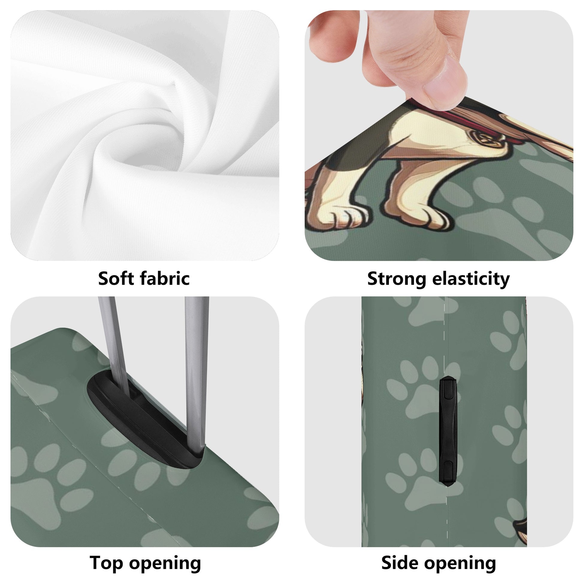 This case cover is made of polyester and canvas fiber that is strong, washable, and stretchy. It fits perfectly over your suitcase and protects it from dirt and scratches.