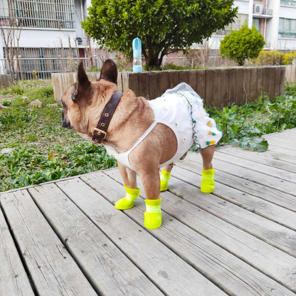 Keep your French Bulldog’s paws dry, clean, and safe with WetGuard Pet Rain Boots! Designed for maximum protection, these waterproof, non-slip boots shield your pup from rain, mud, and rough surfaces. Made with wear-resistant materials, they ensure durability and long-lasting comfort, making them perfect for every adventure.