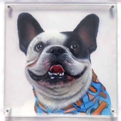 Celebrate your beloved Frenchie with a stunning, hand-painted 3D acrylic glass artwork! Our talented artists use multi-layer acrylic glass to create a captivating depth effect, bringing your furry friend to life in a breathtaking oil painting style.