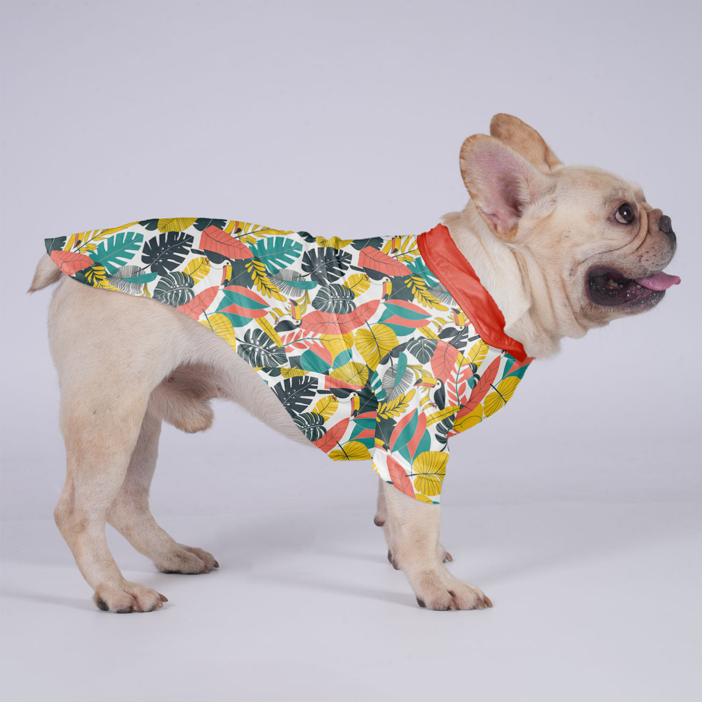 Deja que tu cachorro destaque con su estilo tropical con esta ligera camisa hawaiana. Hecha con tejido transpirable y elástico en cuatro direcciones (95 % poliéster, 5 % elastano), está diseñada para disfrutar del buen tiempo y para el día a día. Su colorido diseño le da un toque de personalidad isleña al vestuario de tu bulldog francés.