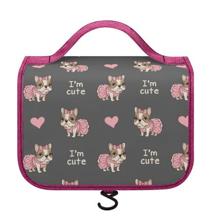 Mantén tus viajes organizados con nuestra bolsa de viaje para cosméticos y artículos de aseo, perfecta para los amantes de los bulldogs franceses. Fabricada en lona resistente y poliéster, esta bolsa te permite tener tus artículos esenciales organizados y a mano, tanto en casa como fuera de ella.