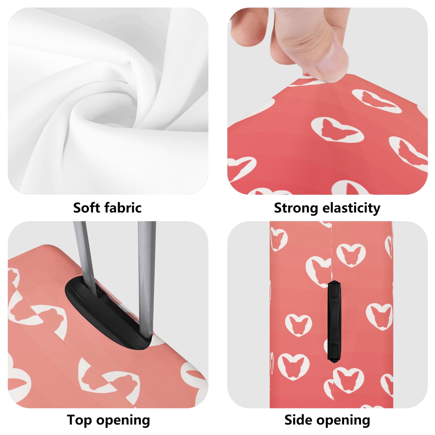 La funda también presenta un encantador estampado de Boston Terrier en ambos lados que hará que tu equipaje se destaque y muestre tu amor por estos lindos perros.