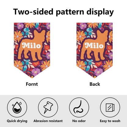 Tu banderín de jardín personalizado con el nombre de tu bulldog francés se elaborará con esmero para reflejar tu pasión. La impresión de calidad y el poliéster resistente garantizan un homenaje duradero a tu amor por los bulldogs franceses. 🐶💕
