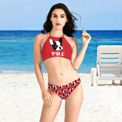 Sumérgete en el estilo: Conjuntos de bikini para mujeres amantes del bulldog francés