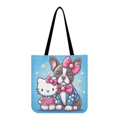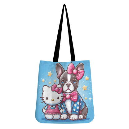 ¡Demuestra tu amor por los bulldogs franceses con nuestra elegante y funcional bolsa de mano! Hecha con una mezcla de poliéster y algodón de primera calidad, esta bolsa es duradera y resistente, perfecta para el día a día. Sus dos asas para el hombro facilitan su transporte y su espacioso interior ofrece mucho espacio para tus pertenencias.