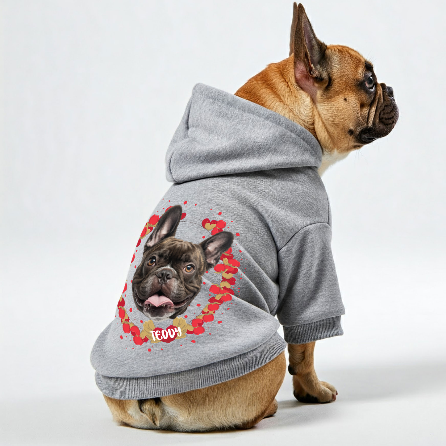 Marco de corazones: sudaderas personalizadas de bulldog francés con frases divertidas, nombre personalizado y la foto de tu bulldog. Elegantes, acogedoras y de primera calidad. 100 % algodón.