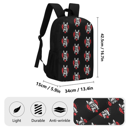 Combine whimsy and durability with our heart-patterned laptop backpack. Let your love for French Bulldogs shine through while ensuring your tech and essentials are safely stowed on the go.