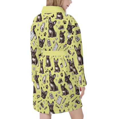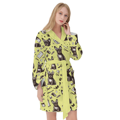 Introducing our exclusive Women's Bathrobe, designed for the ultimate comfort of Frenchies lovers. Crafted from a lightweight Polyester Blend fabric, this bathrobe is not only irresistibly soft but also perfect for lounging in style. The self-tie belt ensures a secure and stylish universal fit, allowing you to personalize your comfort level.