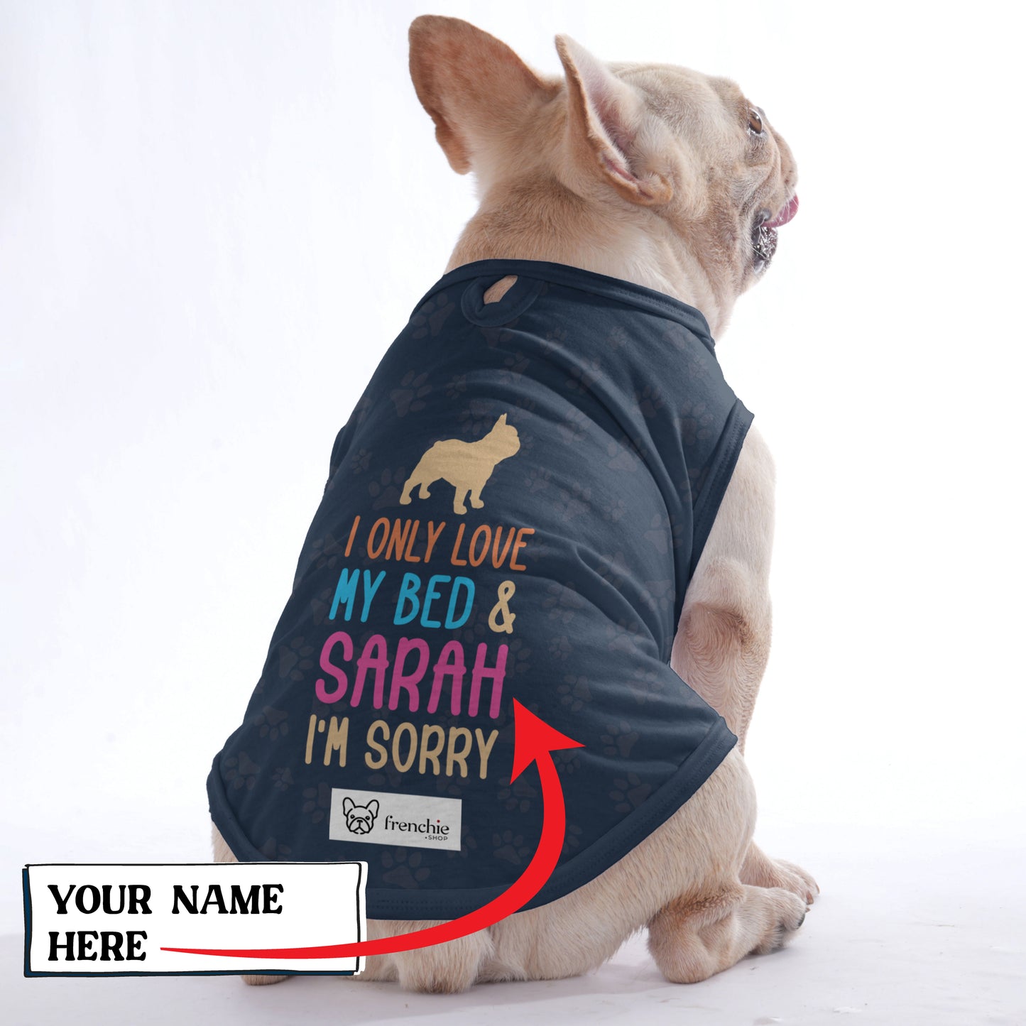 Dress your precious Frenchie in ultimate comfort and style with our personalized shirts, customized with the Frenchie owner's name, and designed with your furry friend's needs in mind.