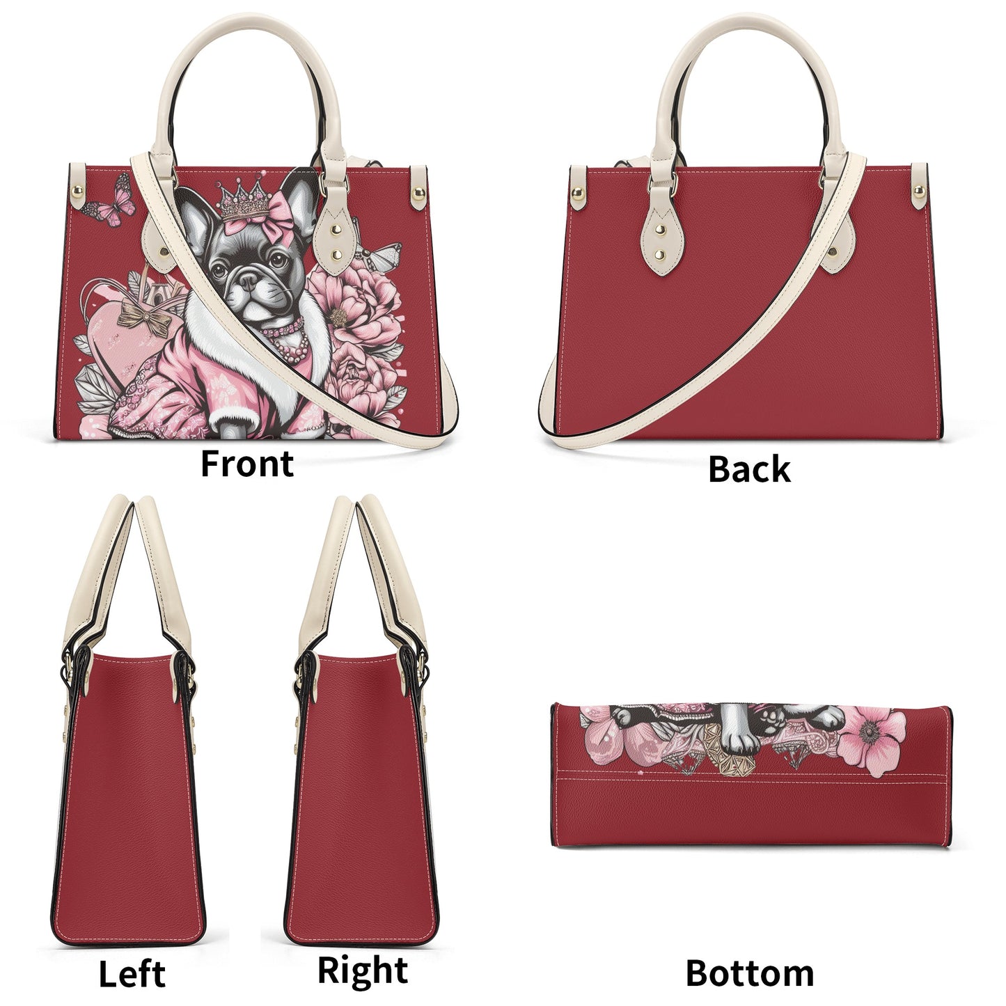 Diseño y estilo: El bolso luce un estampado personalizado integral que celebra el encanto de los bulldogs franceses. Su sofisticada combinación de colores en blanco y negro permite combinarlo fácilmente con diversos atuendos, garantizando un estilo impecable dondequiera que vayas.