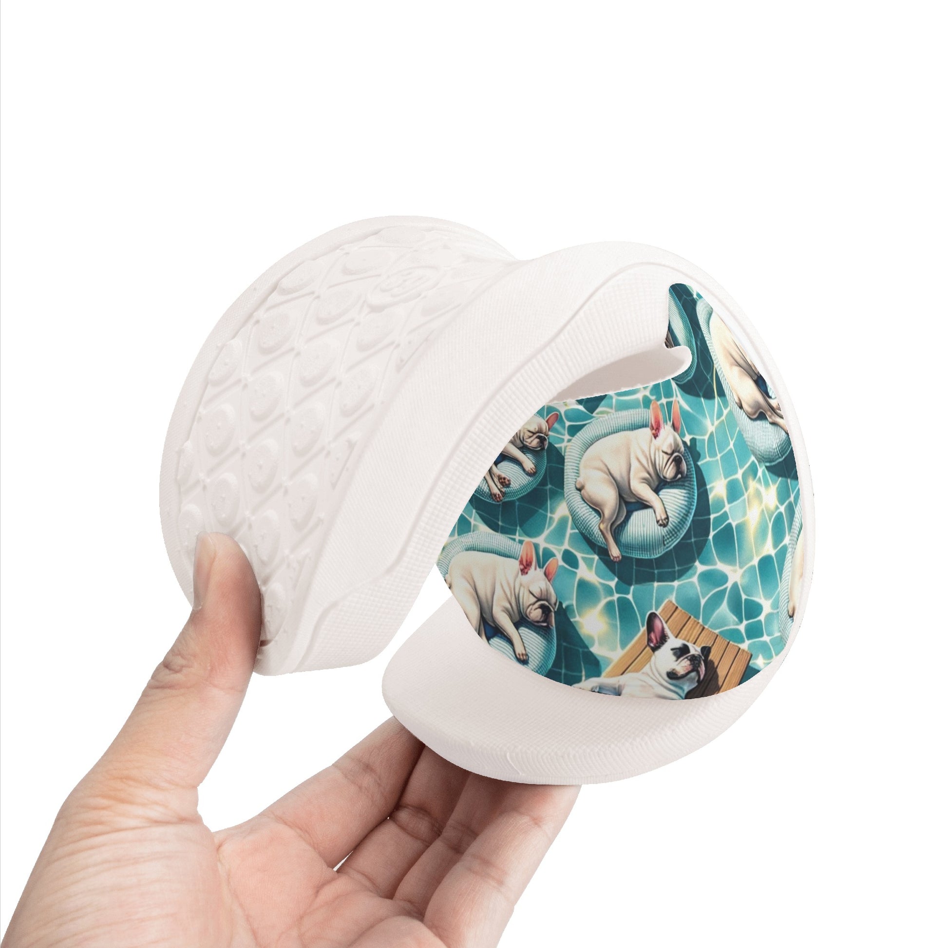 Sumérgete en la pasión por los bulldogs franceses con nuestras sandalias de punta abierta, diseñadas especialmente para el amante de los bulldogs que llevas dentro. Estas sandalias de una sola pieza son fáciles de poner y quitar, lo que te garantiza estar siempre listo para salir.