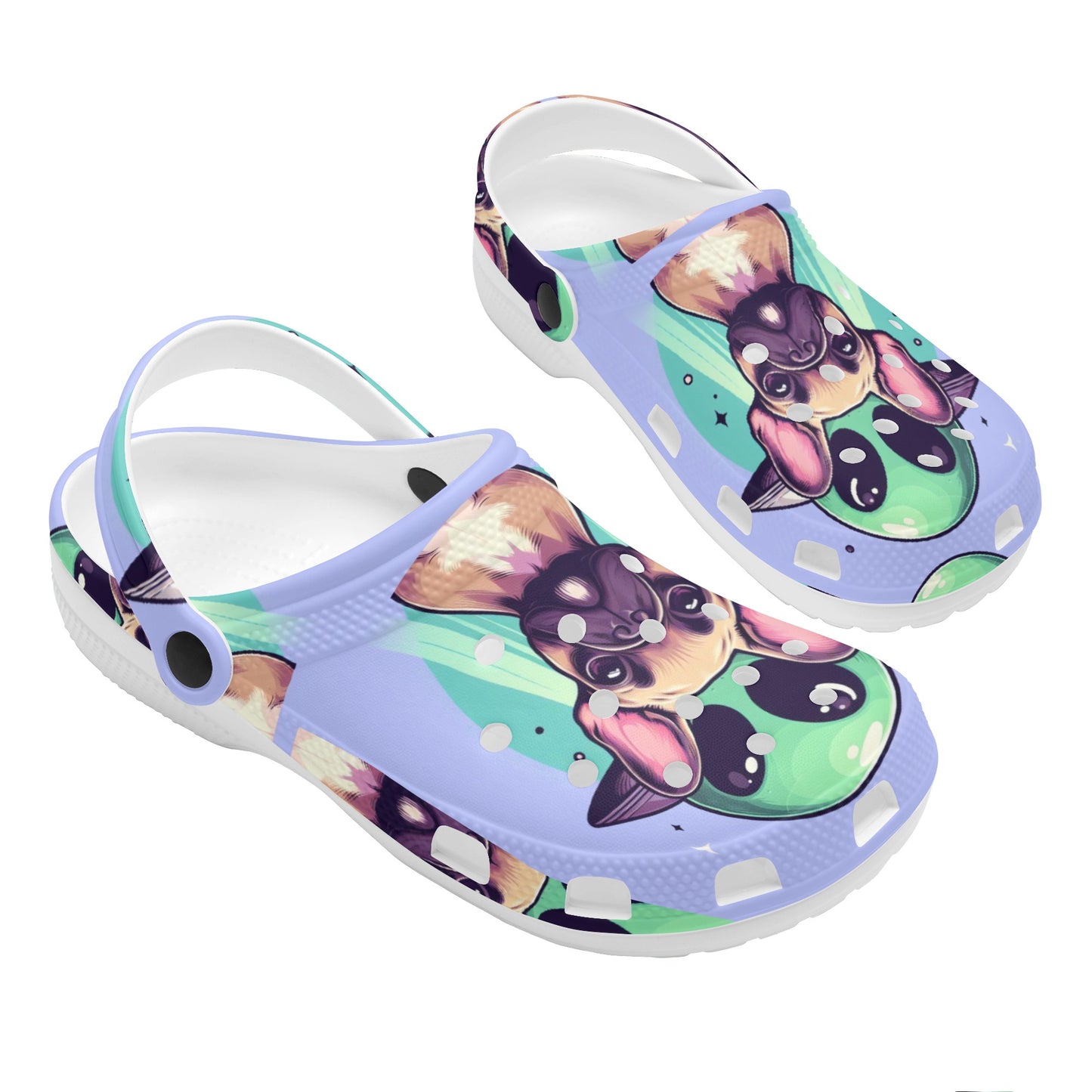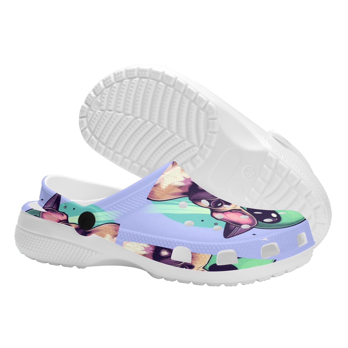 Crafted with care, the lightweight EVA material ensures you can move as freely and playfully as a spirited Frenchie. The Croslite™ footbed molds to your feet, providing a custom fit that’s as unique as the beloved breed itself. Ventilation ports not only add breathability but also allow you to wade through puddles just like a Frenchie in the rain, shedding water with ease and quickness.