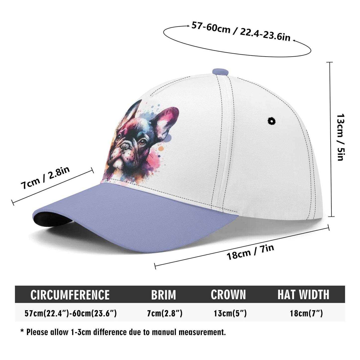 Show off your love for French Bulldogs with this stylish and functional baseball cap. Whether you're out on an adventure or just enjoying a sunny day, this cap is the perfect accessory for any French Bulldog enthusiast!
