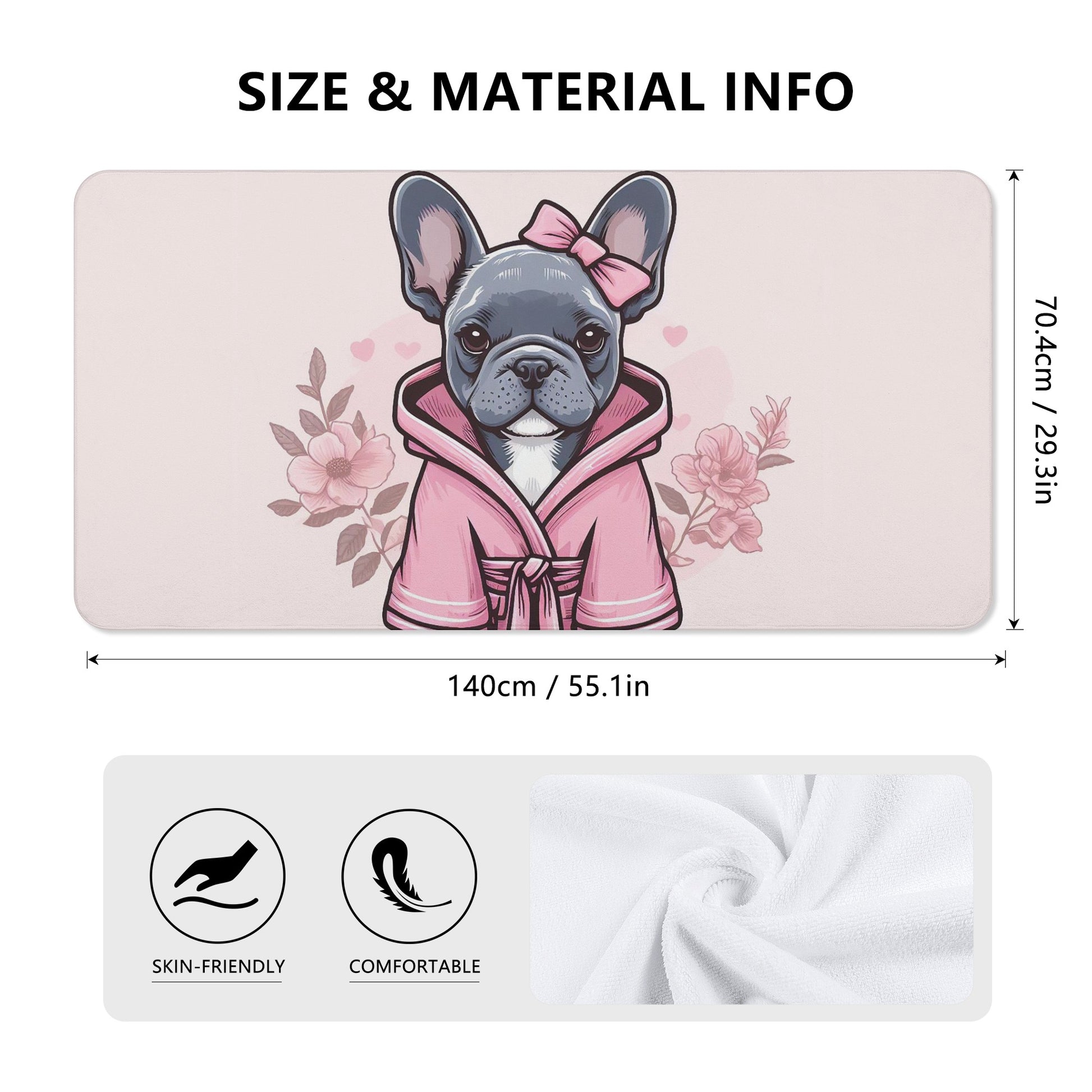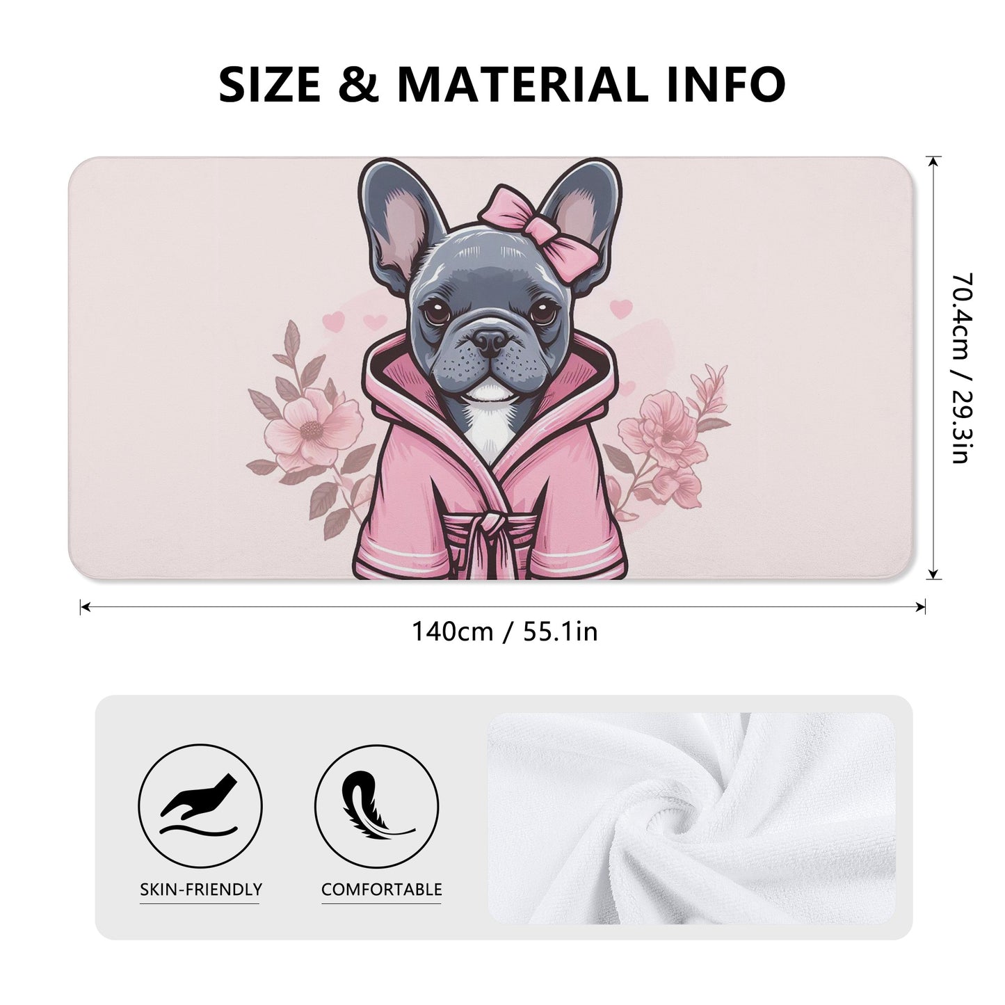 Ideal For:French Bulldog lovers who appreciate a blend of style, comfort, and practicality in their daily lives. This bath towel is not just a bathroom essential; it's a statement of affection for one of the most charming dog breeds. Whether it's for personal use or as a thoughtful gift, it's sure to bring joy and convenience.