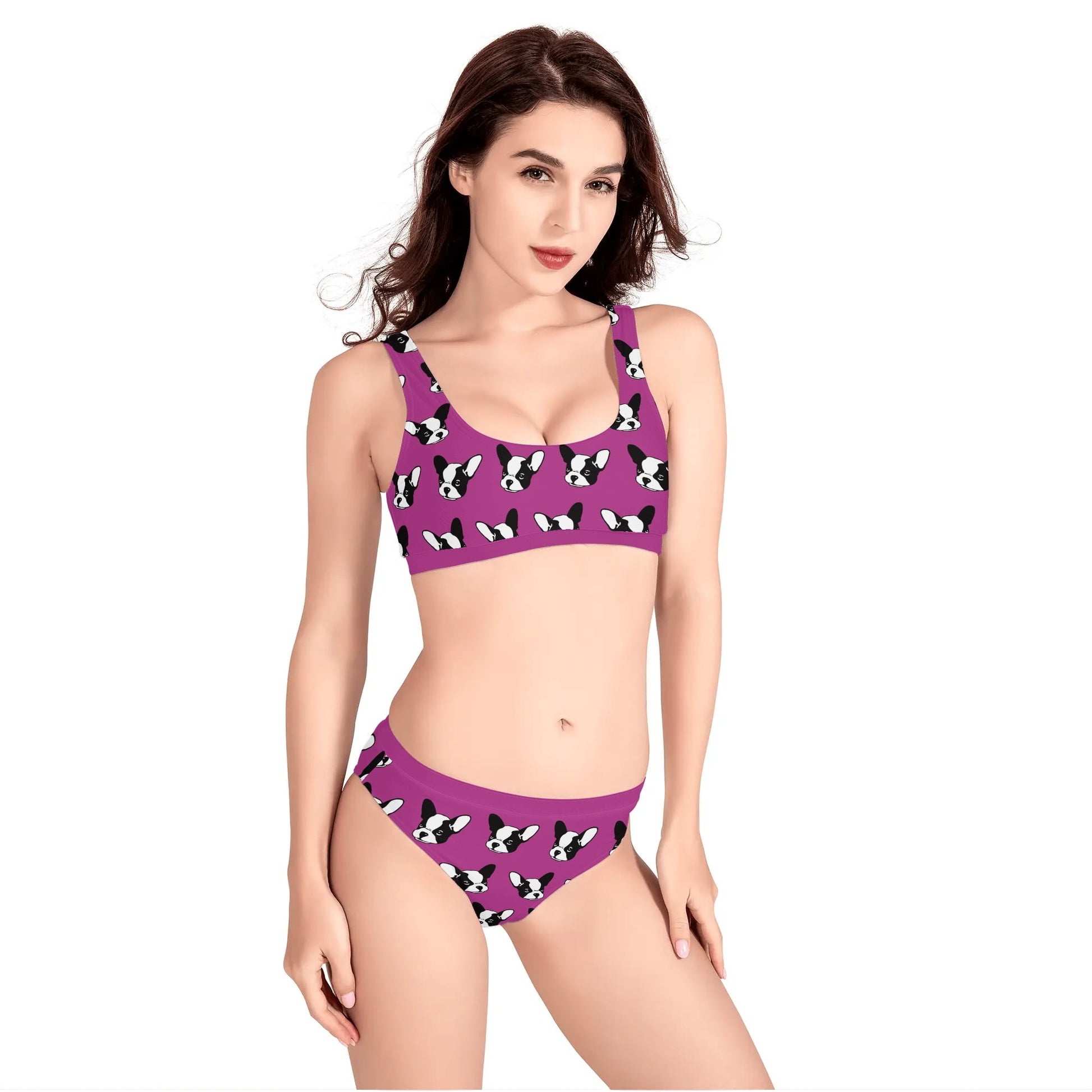 ¡Presume de tu orgullo por el bulldog francés con nuestro elegante bikini deportivo para mujer! Perfecto para días de playa, fiestas en la piscina o para relajarte bajo el sol.