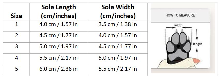 Consejo: Mide el ancho de la pata de tu perro para que le quede perfecto. Consulta nuestra tabla de tallas antes de realizar tu pedido.