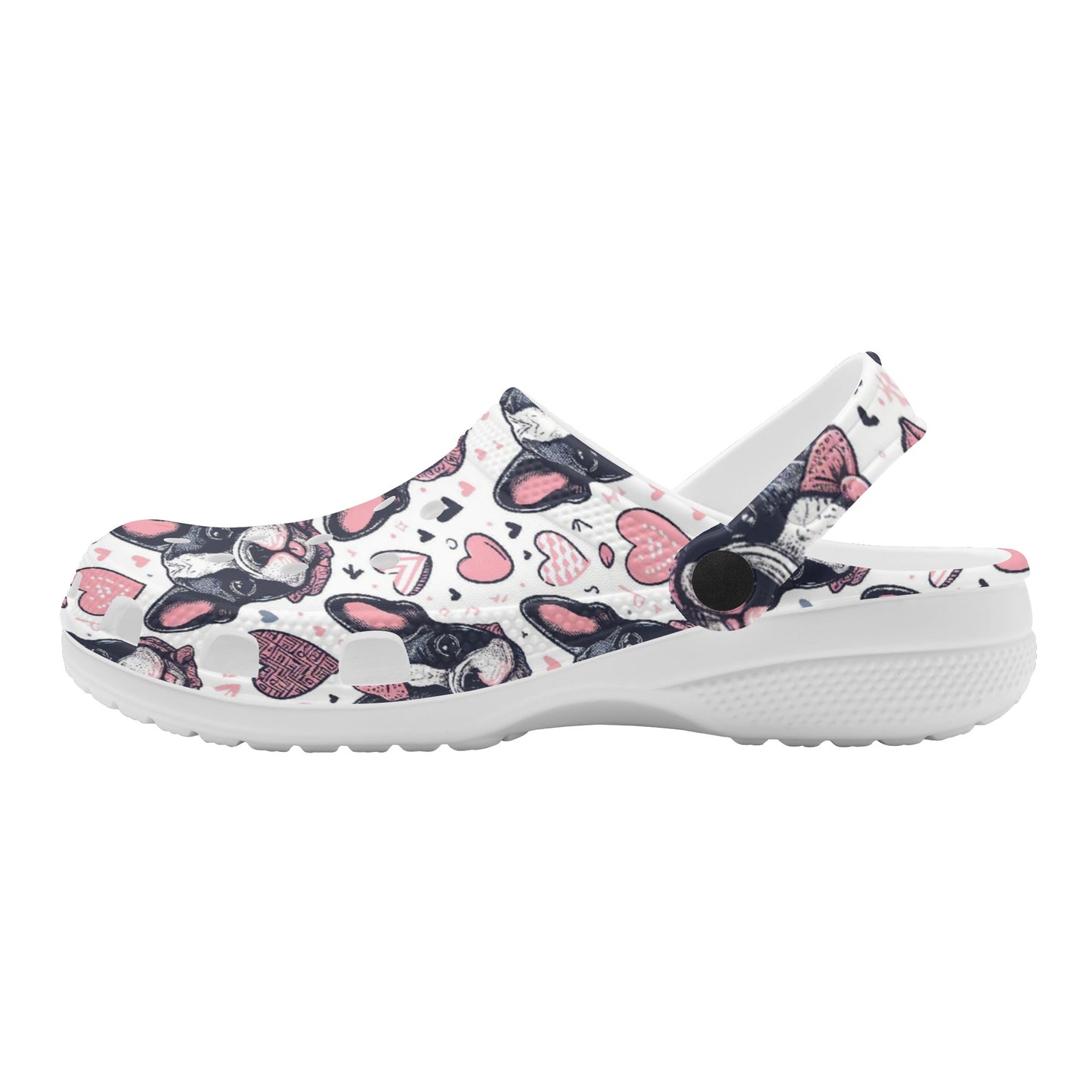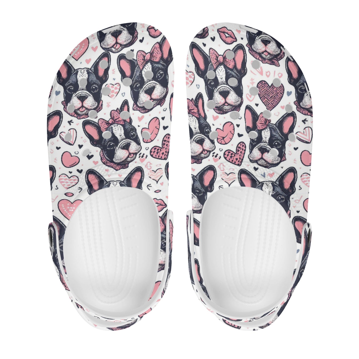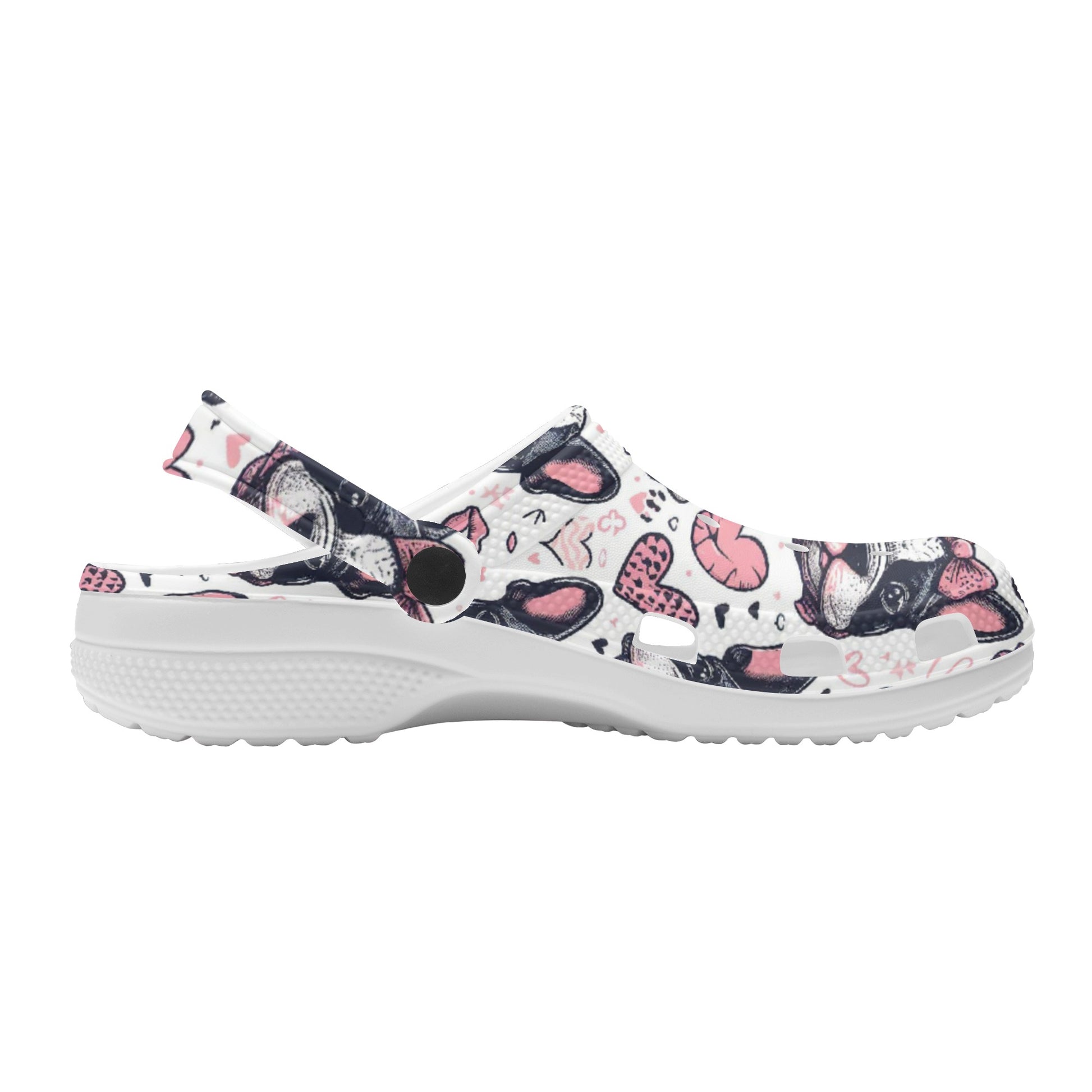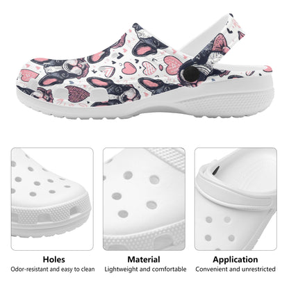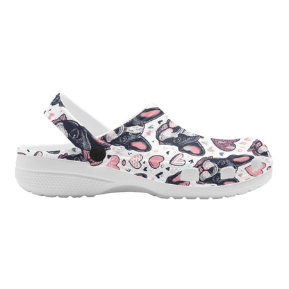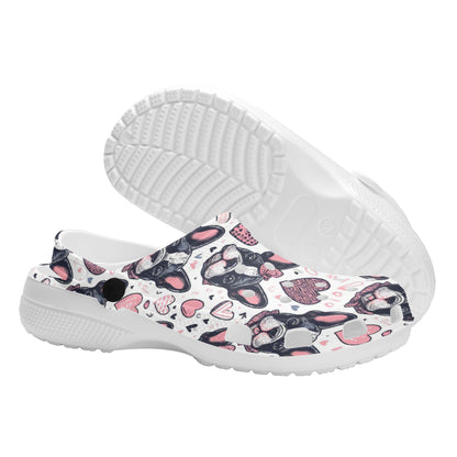 Step into a pair of our Bright White Foam Clogs and carry the spirit of French Bulldogs with you wherever you go—your feet enveloped in comfort, your companionship with your furry friend celebrated with every step.