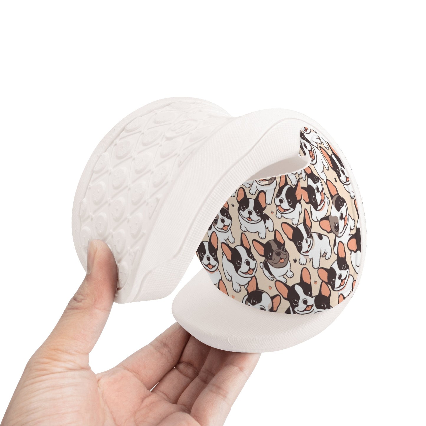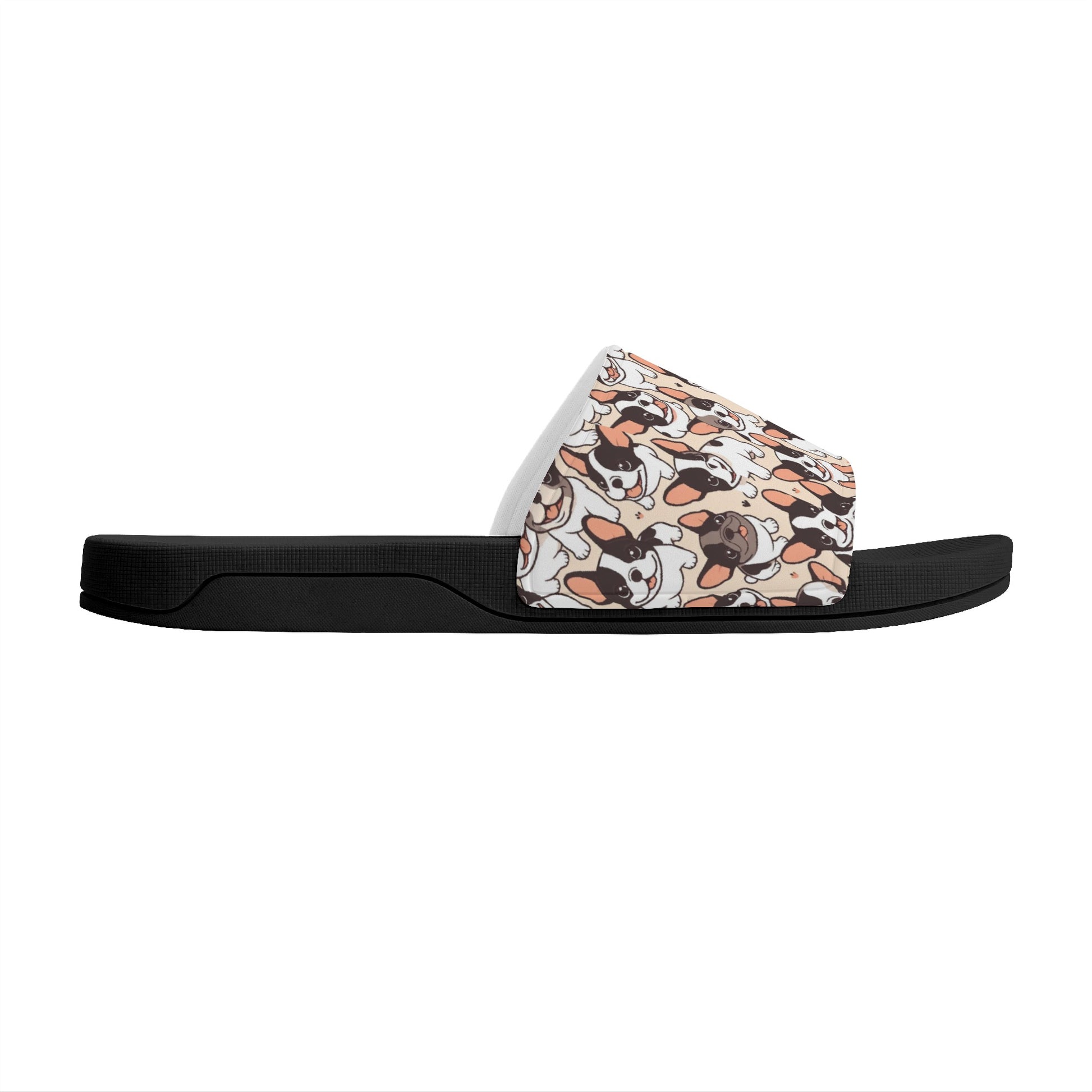 Step into the world of French Bulldog adoration with our open-toe sandals, specially designed for the Frenchie enthusiast in you. These one-piece sandals are not only easy to slip into but equally effortless to take off, ensuring you're always ready on the go.