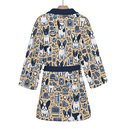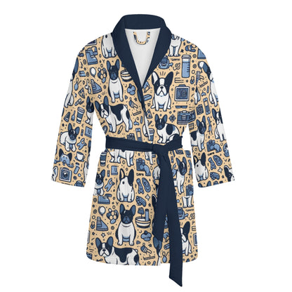 Introducing our exclusive Women's Bathrobe, designed for the ultimate comfort of Frenchies lovers. Crafted from a lightweight Polyester Blend fabric, this bathrobe is not only irresistibly soft but also perfect for lounging in style. The self-tie belt ensures a secure and stylish universal fit, allowing you to personalize your comfort level.