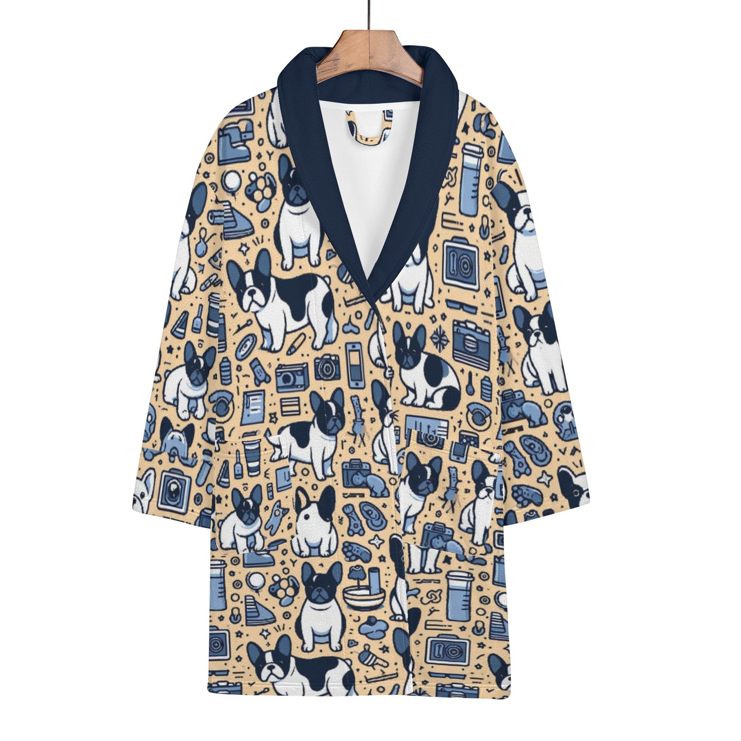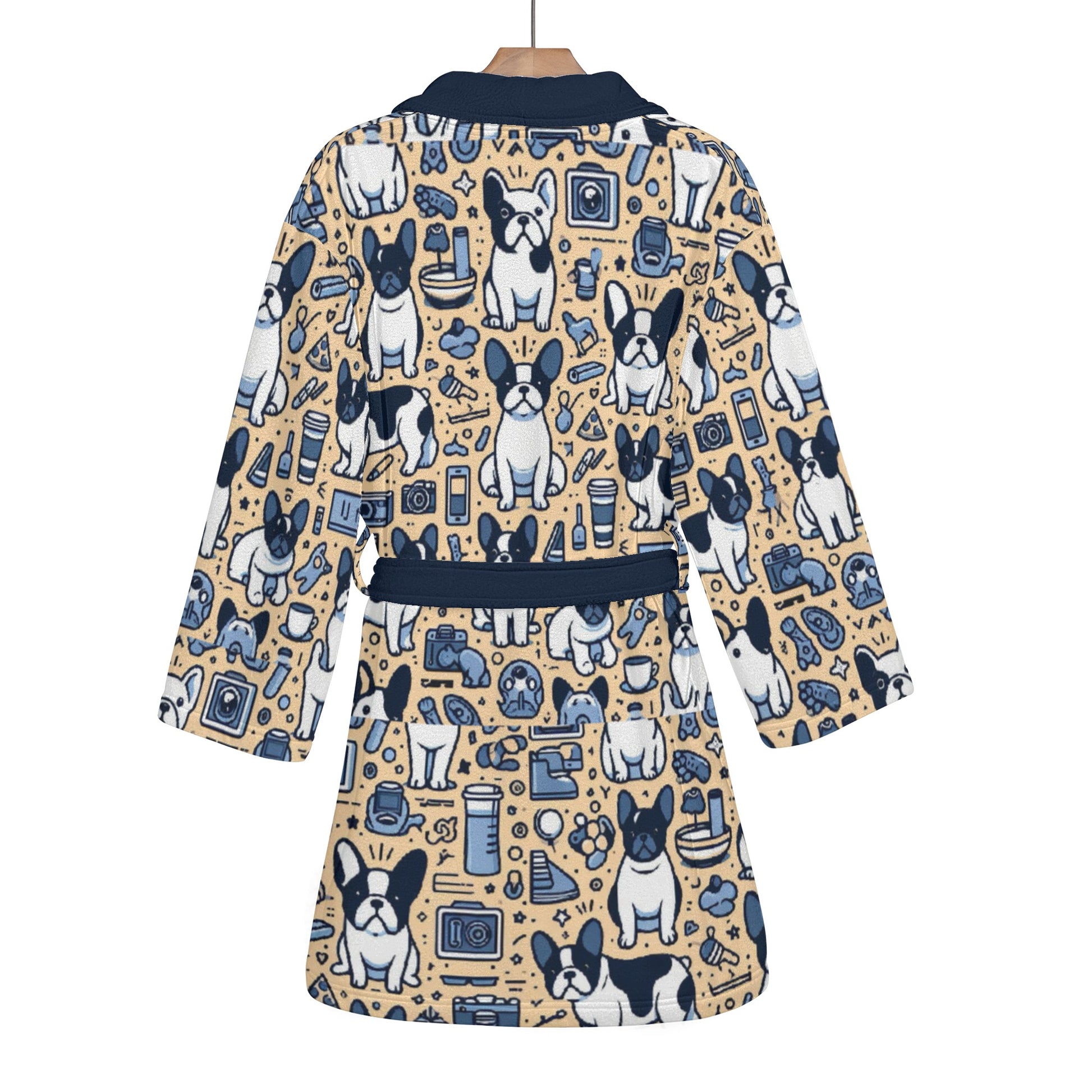 The thoughtful design extends to easy care as well. Our Women's Bathrobe is machine washable, and we recommend a cold water gentle cycle with a mild detergent to keep it looking and feeling its best. Pamper yourself or surprise the Frenchie enthusiast in your life with this delightful bathrobe – a perfect blend of comfort, style, and a touch of French Bulldog charm. Elevate your loungewear experience with our Women's Bathrobe and immerse yourself in luxury.