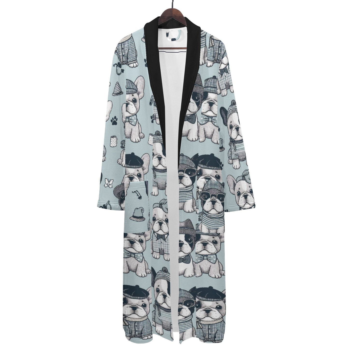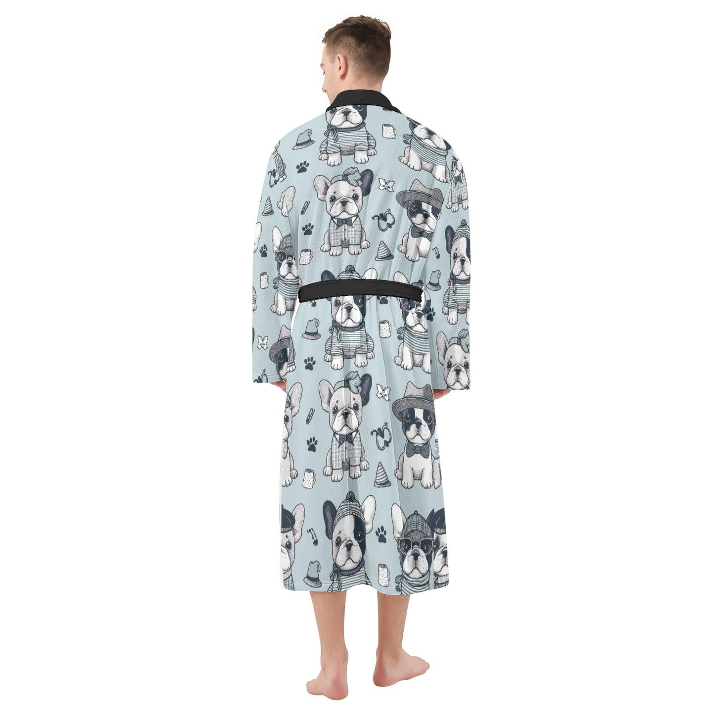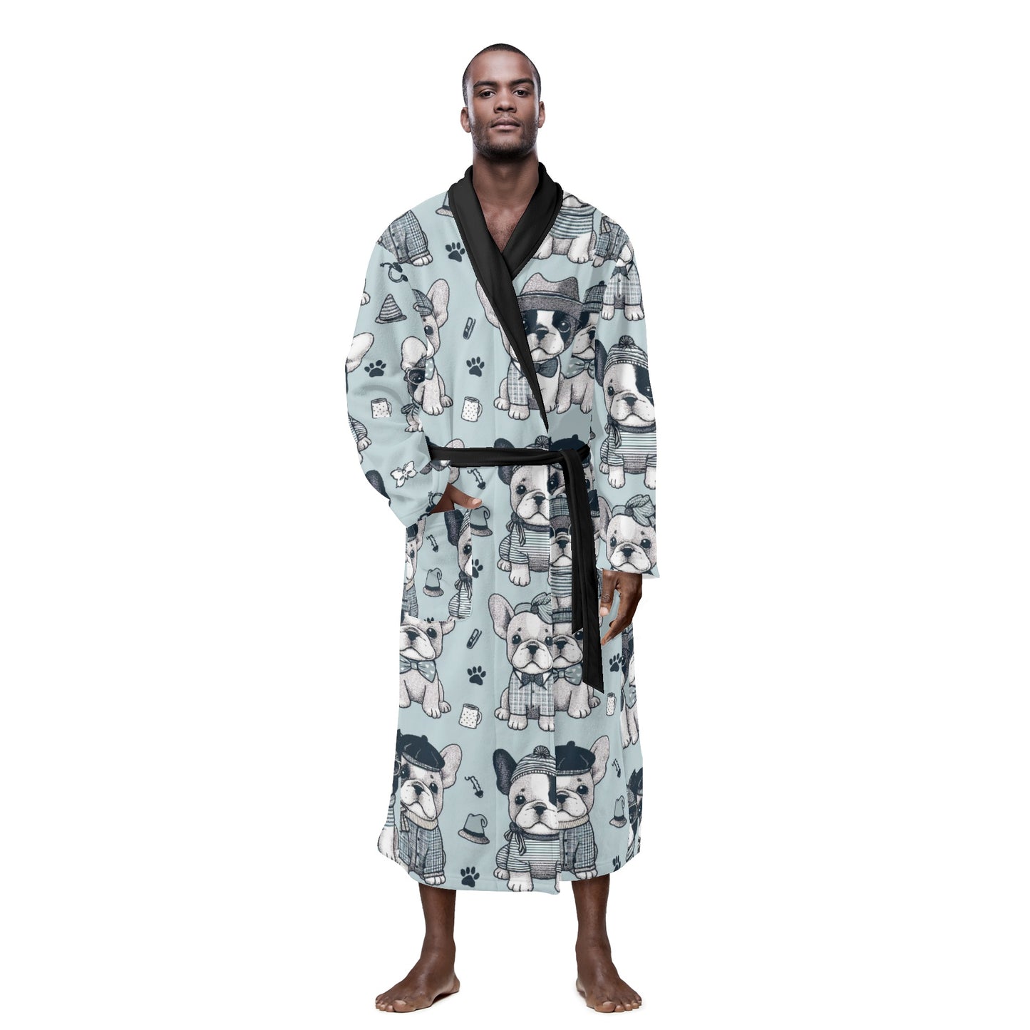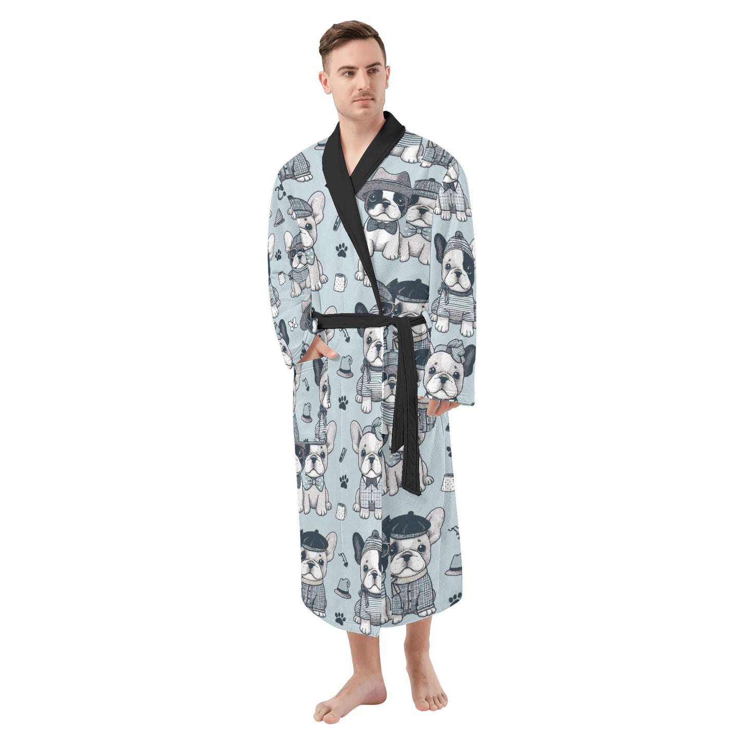 Mejora tu tiempo libre con esta bata única que refleja tu pasión por los bulldogs franceses. Ya sea que empieces el día con un café o te relajes por la noche, nuestra bata para hombre combina comodidad y encanto a la perfección. Date un capricho o sorprende a tu amante de los bulldogs franceses con esta excepcional prenda de estar en casa: una combinación perfecta de estilo, comodidad y un toque de bulldog francés. Disfruta de la máxima relajación con nuestra bata para hombre.