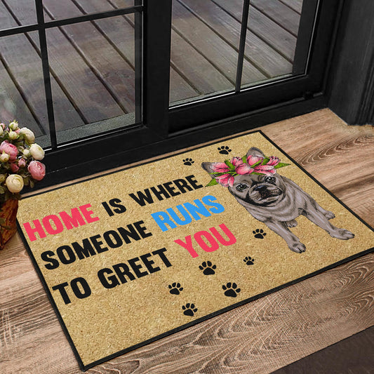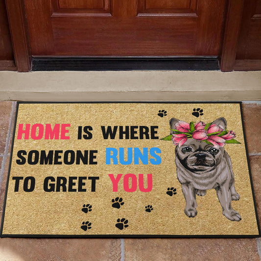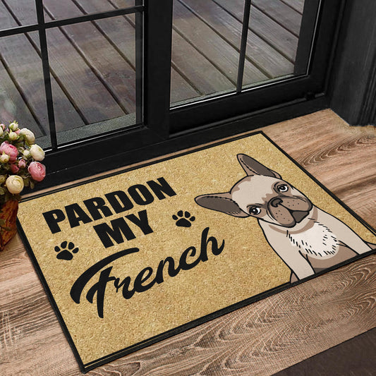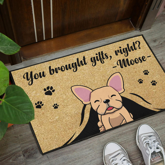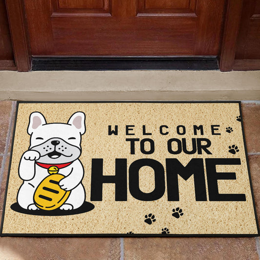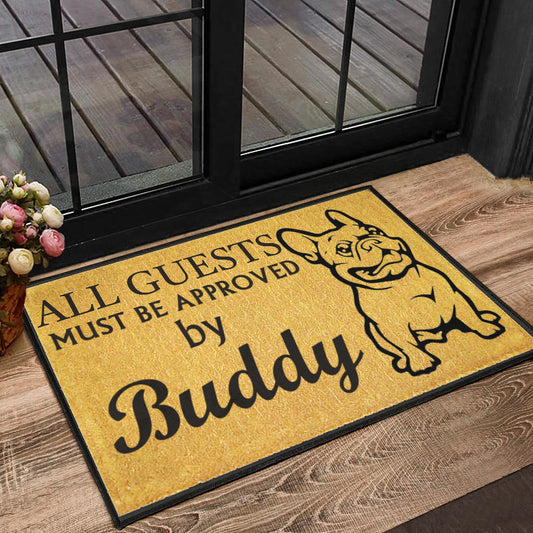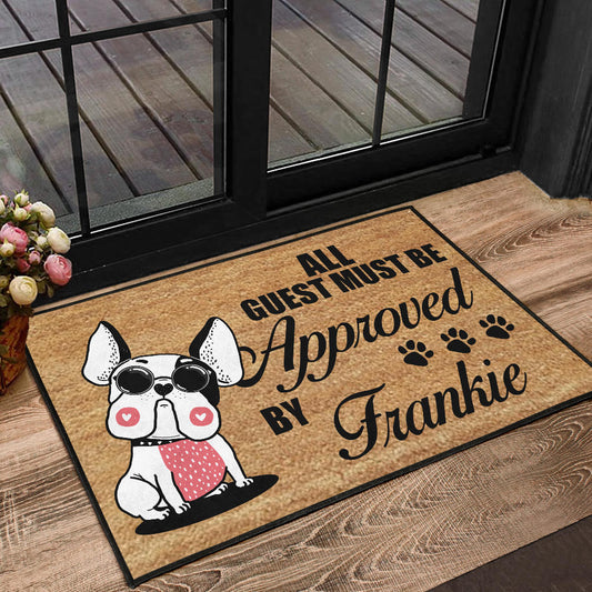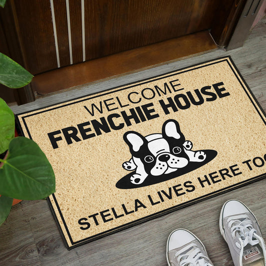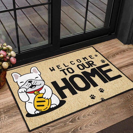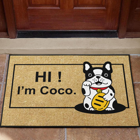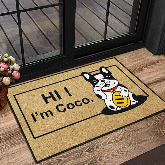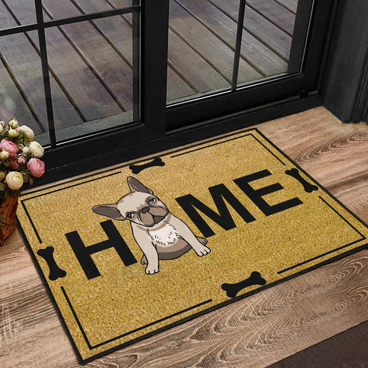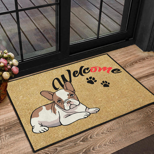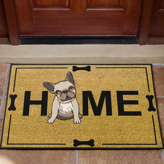 Paillasson personnalisé bouledogue français unique et amusant. Idéal pour accueillir vos invités avec style et montrer votre amour pour votre chien.
