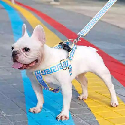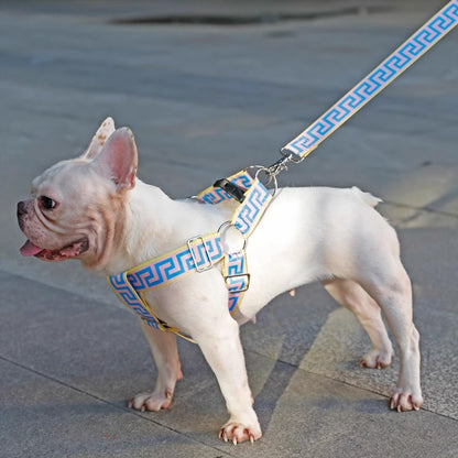 Améliorez l'expérience de promenade de votre chien avec le harnais et la laisse BarkTrend Frenchie Greek Key - où le luxe rencontre la fonctionnalité !