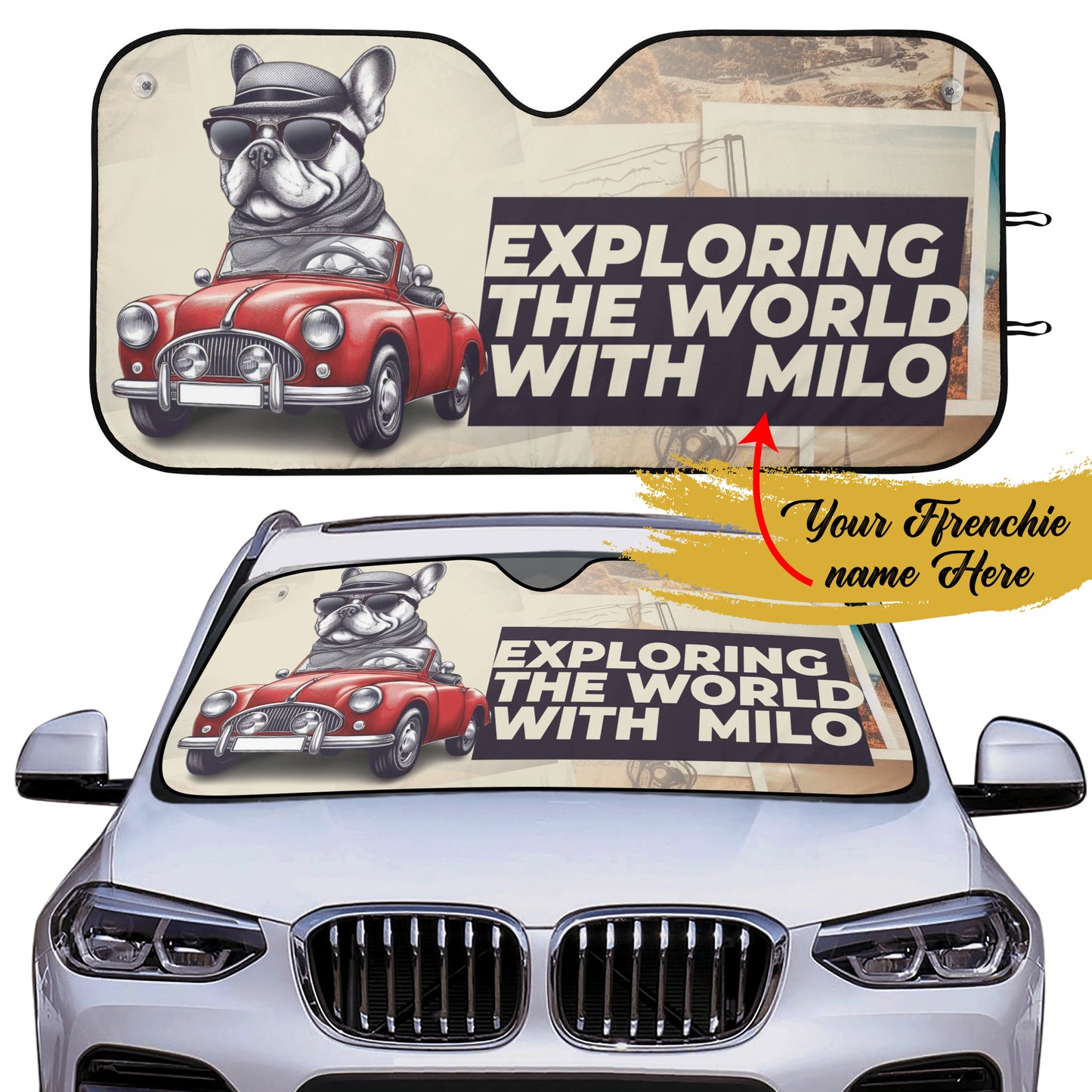 Faites passer votre amour pour votre bouledogue français à un niveau supérieur avec notre pare-soleil personnalisé pour les amoureux des bouledogues français. N'attendez plus ! Commandez dès aujourd'hui et ajoutez une touche de charme et de raffinement à votre voiture ! 🐶💕