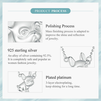 Affichez votre amour pour votre chiot avec ce magnifique collier bouledogue français , conçu pour célébrer l'esprit joueur et loyal des bouledogues français. Ce charmant collier bouledogue français est orné d'un pendentif détaillé reprenant les oreilles caractéristiques de la race, son doux minois et sa posture assurée, le tout en métal poli pour un look intemporel. Que vous le portiez seul ou avec d'autres bijoux préférés, ce collier bouledogue français en argent est l'accessoire idéal pour les amoureux des chiens qui souhaitent garder leur meilleur ami près de leur cœur.