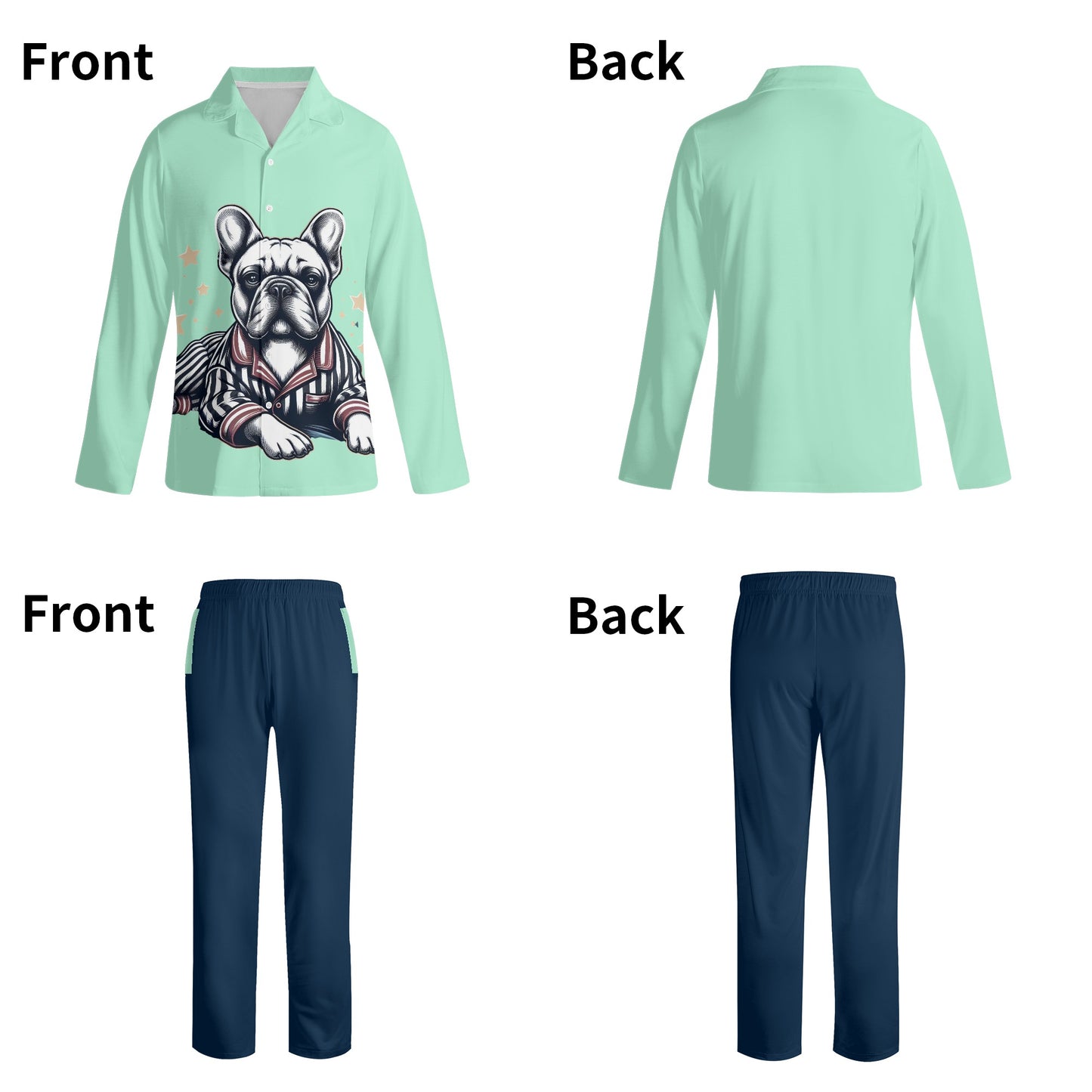 Offrez-vous un confort ultime avec notre ensemble pyjama spécialement conçu, un mélange parfait de style et de confort pour les amoureux des bouledogues français. Confectionné avec soin et souci du détail, cet ensemble pyjama est bien plus qu'un simple vêtement de nuit ; c'est un moyen de se détendre et d'afficher votre amour pour les bouledogues français avec confort et style.