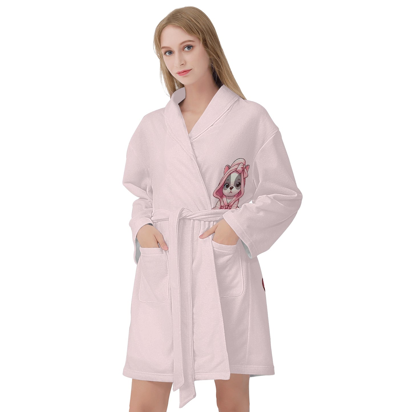 Découvrez notre peignoir exclusif pour femme, conçu pour le confort ultime des amatrices de bouledogues français. Confectionné dans un mélange de polyester léger, ce peignoir est non seulement d'une douceur irrésistible, mais aussi idéal pour se détendre avec style. Sa ceinture à nouer assure un ajustement sûr et élégant, vous permettant de personnaliser votre confort.