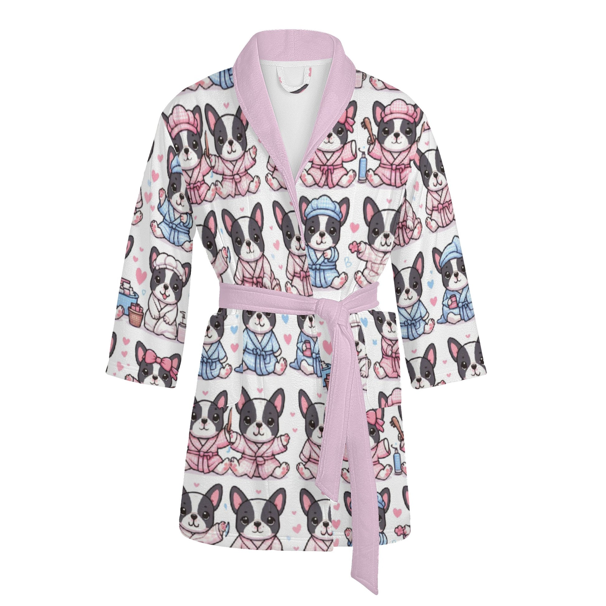 Découvrez notre peignoir exclusif pour femme, conçu pour le confort ultime des amatrices de bouledogues français. Confectionné dans un mélange de polyester léger, ce peignoir est non seulement d'une douceur irrésistible, mais aussi idéal pour se détendre avec style. Sa ceinture à nouer assure un ajustement sûr et élégant, vous permettant de personnaliser votre confort.