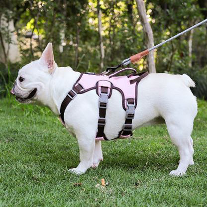 Sécurité nocturne : La sangle de poitrine réfléchissante garantit que votre Frenchie est visible même dans des conditions de faible luminosité, offrant une protection constante lors des promenades nocturnes.
