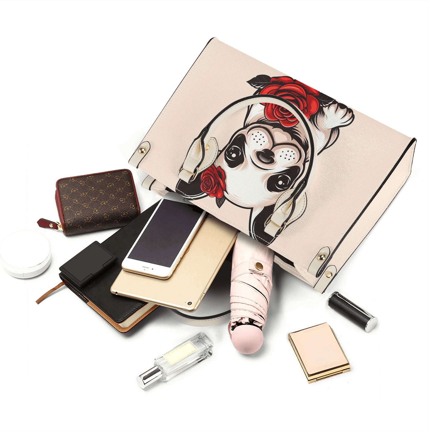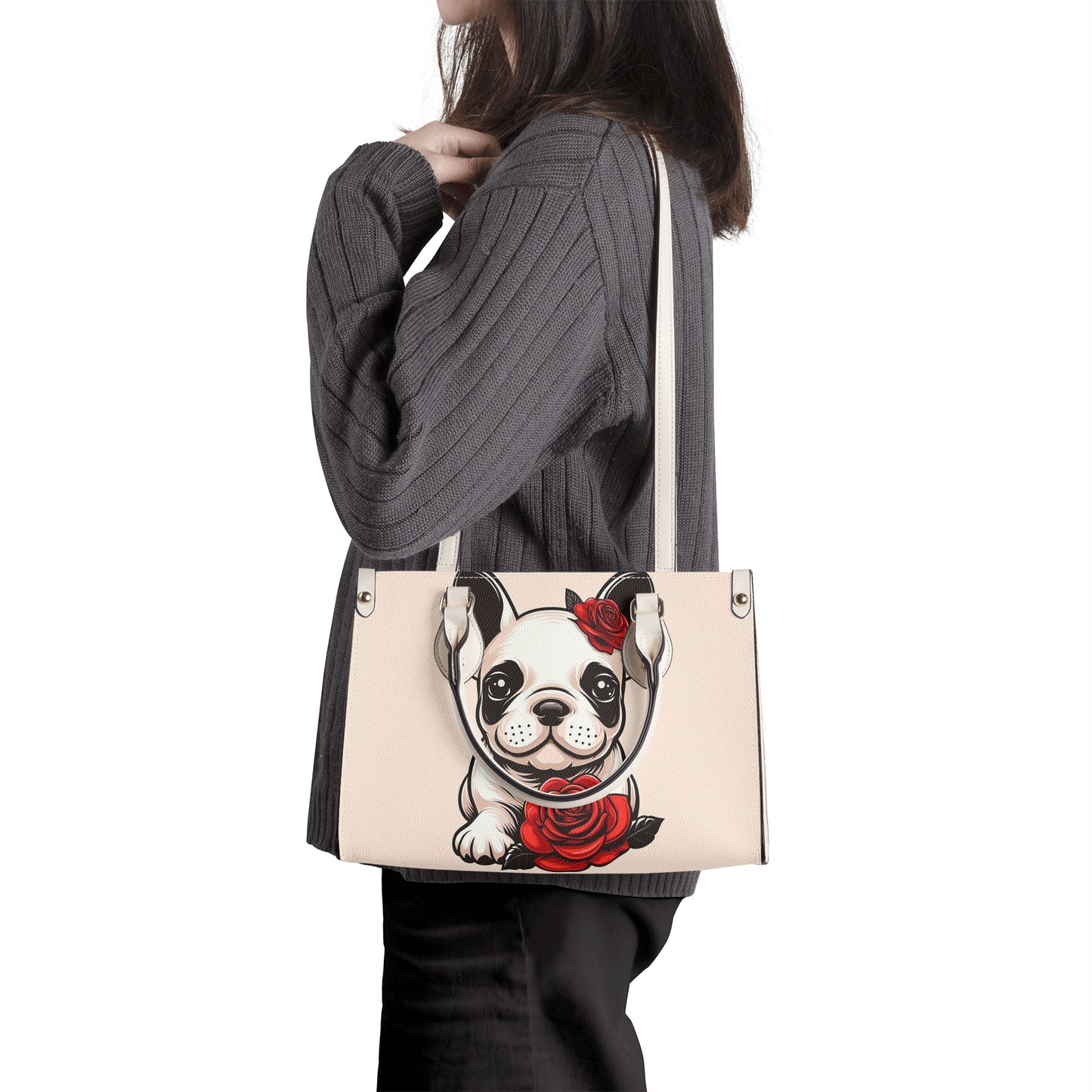 Découvrez notre sac à main raffiné, spécialement conçu pour les passionnées de bouledogues français et de mode. Ce sac fourre-tout allie praticité et élégance, un accessoire indispensable pour la femme moderne.