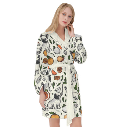 Découvrez notre peignoir exclusif pour femme, conçu pour le confort ultime des amatrices de bouledogues français. Confectionné dans un mélange de polyester léger, ce peignoir est non seulement d'une douceur irrésistible, mais aussi idéal pour se détendre avec style. Sa ceinture à nouer assure un ajustement sûr et élégant, vous permettant de personnaliser votre confort.