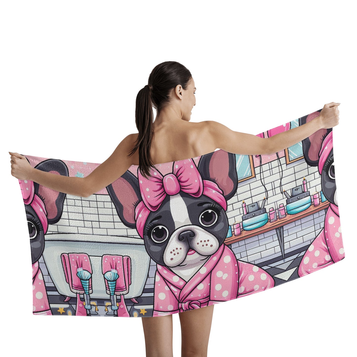 Faites de chaque instant de séchage un moment agréable avec notre serviette de bain « Frenchie Charm ». Conçue spécialement pour les amoureux des bouledogues français, cette serviette allie esthétique et confort pratique, idéale pour la salle de bain, la plage ou le sac de sport.