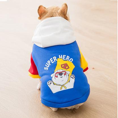 "Super Hero imprimé sur un sweat à capuche pour chien donnant un look unique. Élastique côtelé aux ouvertures des jambes pour plus de confort.