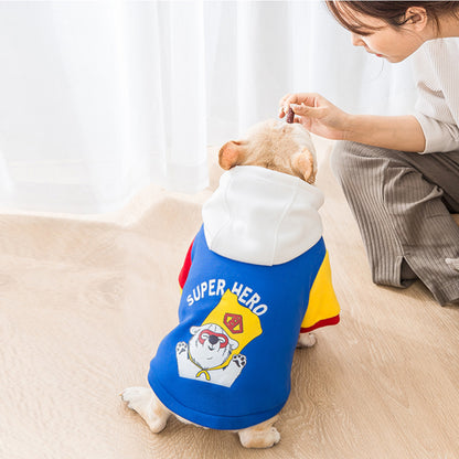 Votre Frenchie est un super-héros dans la vraie vie. Ensuite, ce sweat à capuche Frenchie imprimé "Super Hero" lui donne un nouveau look. Combinaison de couleurs bleu, jaune et rouge, le sweat à capuche Puppy est remarquable.