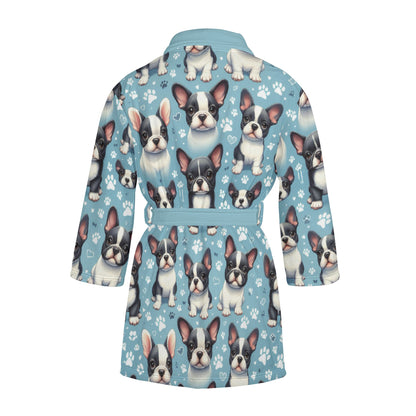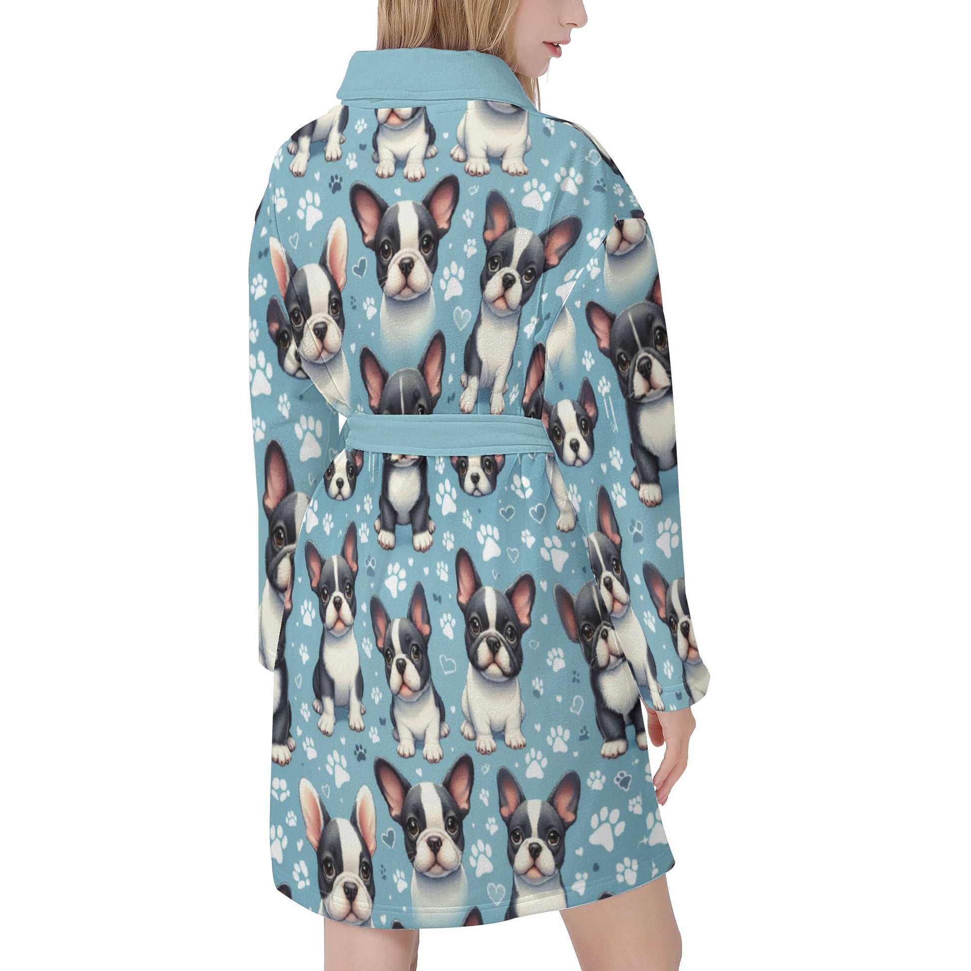Découvrez notre peignoir exclusif pour femme, conçu pour le confort ultime des amoureuses des bouledogues français. Confectionné dans un mélange de polyester léger, ce peignoir est non seulement d'une douceur irrésistible, mais aussi idéal pour se détendre avec style. Sa ceinture à nouer assure un ajustement sûr et élégant, vous permettant de personnaliser votre confort.