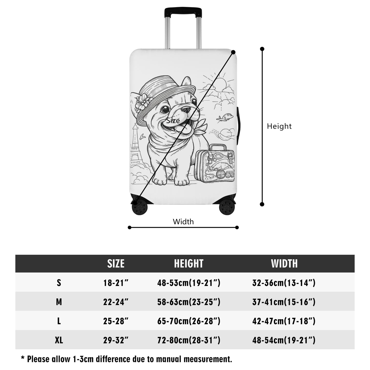 Embrace travel with our French Bulldog-themed luggage cover. Made from a durable blend of polyester and canvas, it safeguards against travel wear and weather. Available in sizes S to XL, it suits every trip.