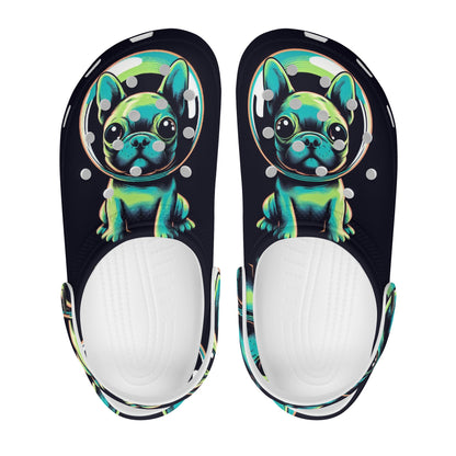 Step into a pair of our Bright White Foam Clogs and carry the spirit of French Bulldogs with you wherever you go—your feet enveloped in comfort, your companionship with your furry friend celebrated with every step.