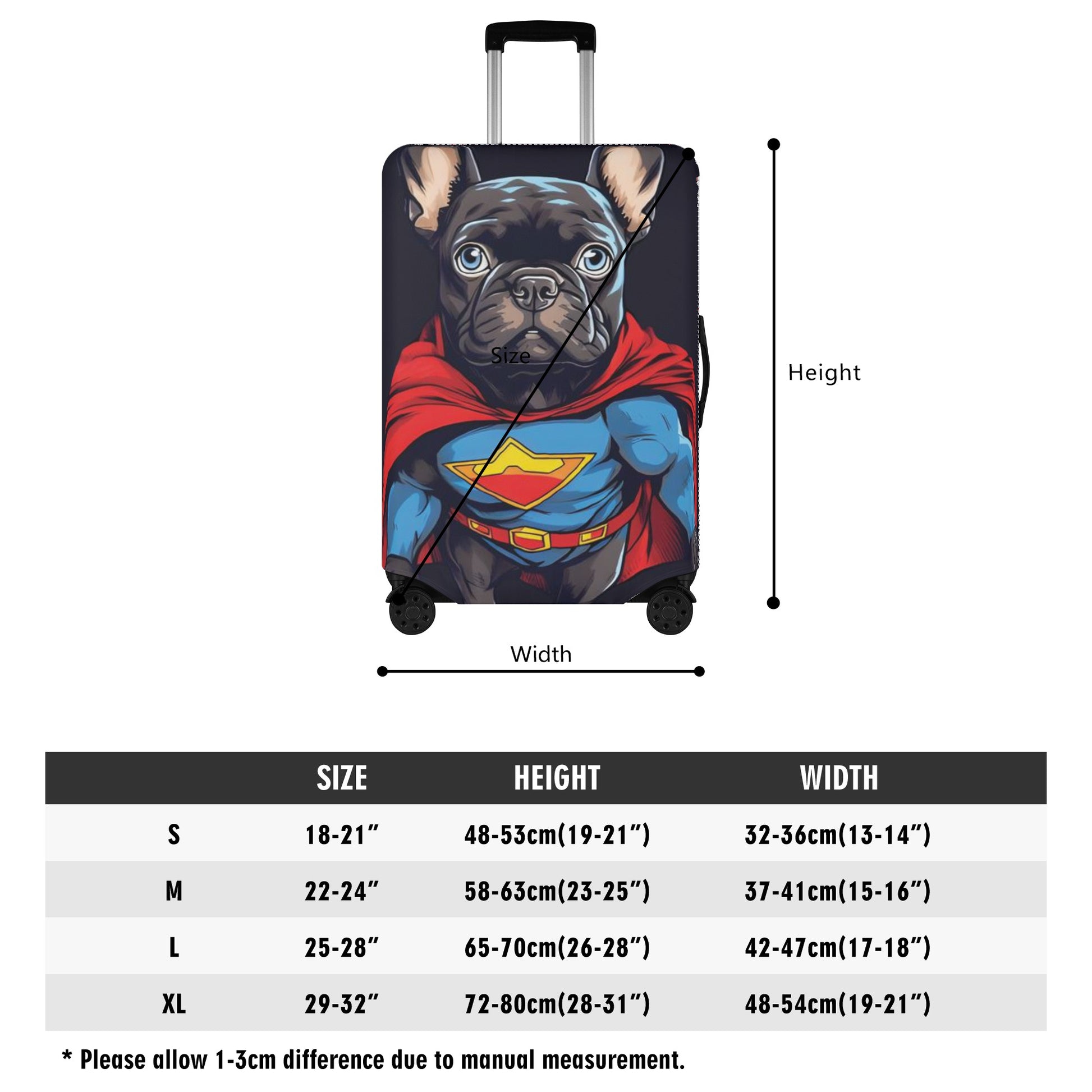 Embrace travel with our French Bulldog-themed luggage cover. Made from a durable blend of polyester and canvas, it safeguards against travel wear and weather. Available in sizes S to XL, it suits every trip.