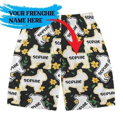 Celebrate your love for French Bulldogs with our exclusive Men's All Over Print Board Shorts. Crafted from premium polyester for durability, these shorts feature an adjustable drawstring waist for a perfect fit. Easily maintain them with simple care instructions. Make them uniquely yours by adding your French Bulldog's name for a personalized touch.