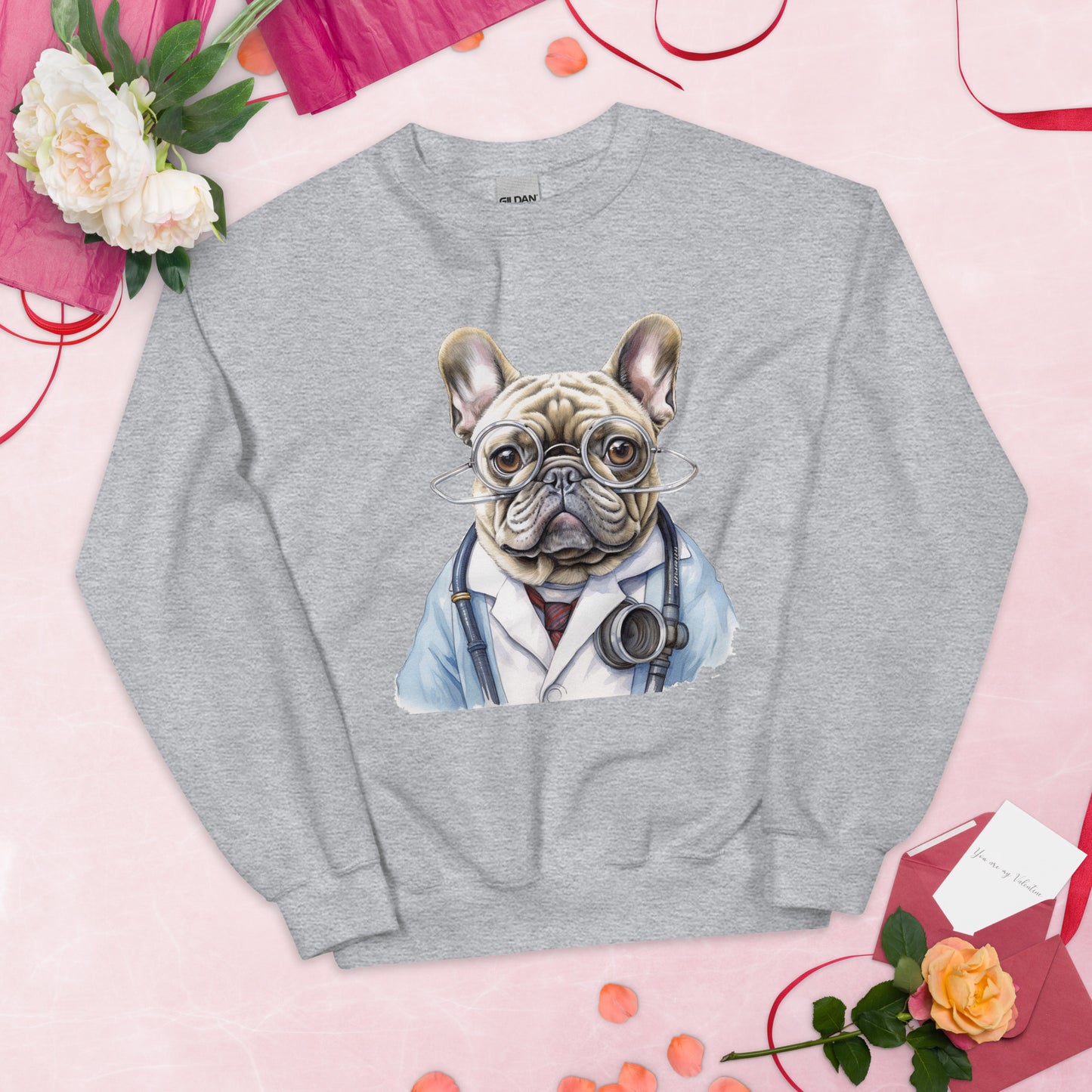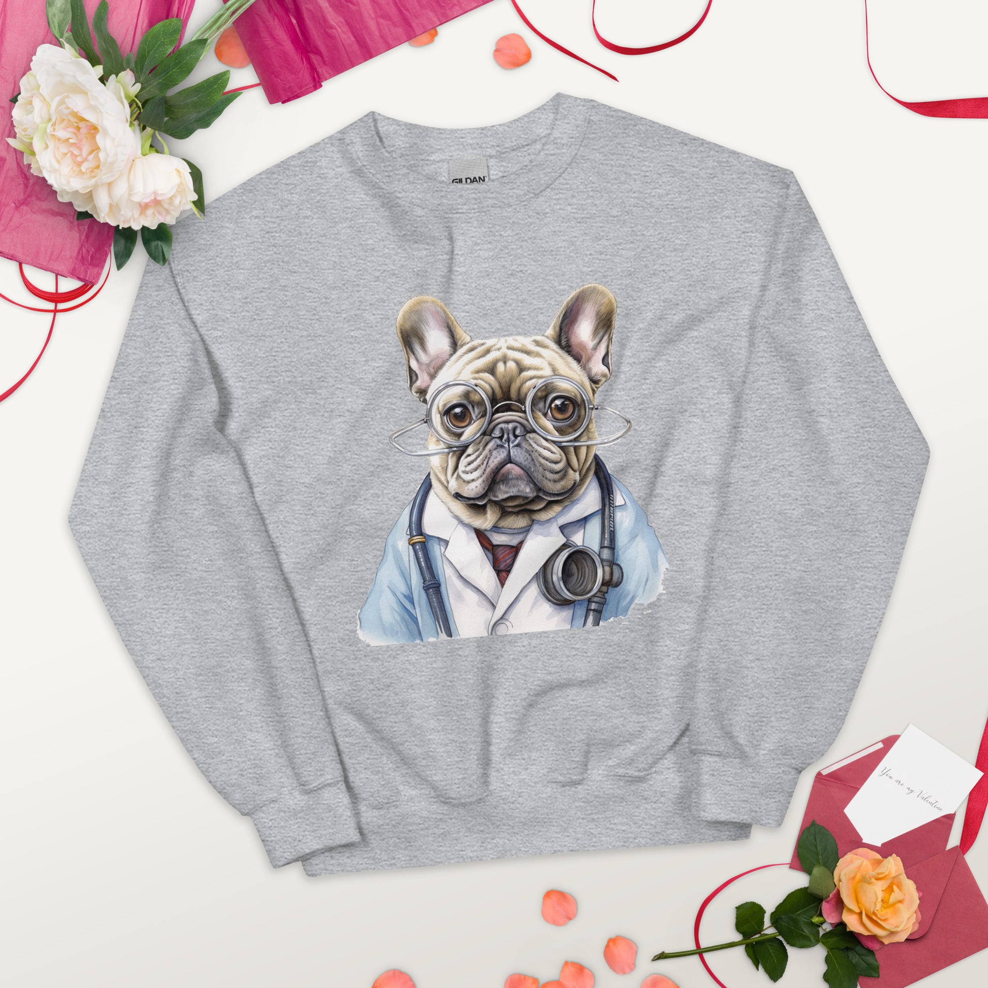 Wrap yourself in the fun and coziness of our "Doctor Frenchie" unisex crew neck sweatshirt. This unique garment merges your fondness for Frenchies and the medical field, creating a warm, stylish sweatshirt that adds a touch of humor to your everyday attire.